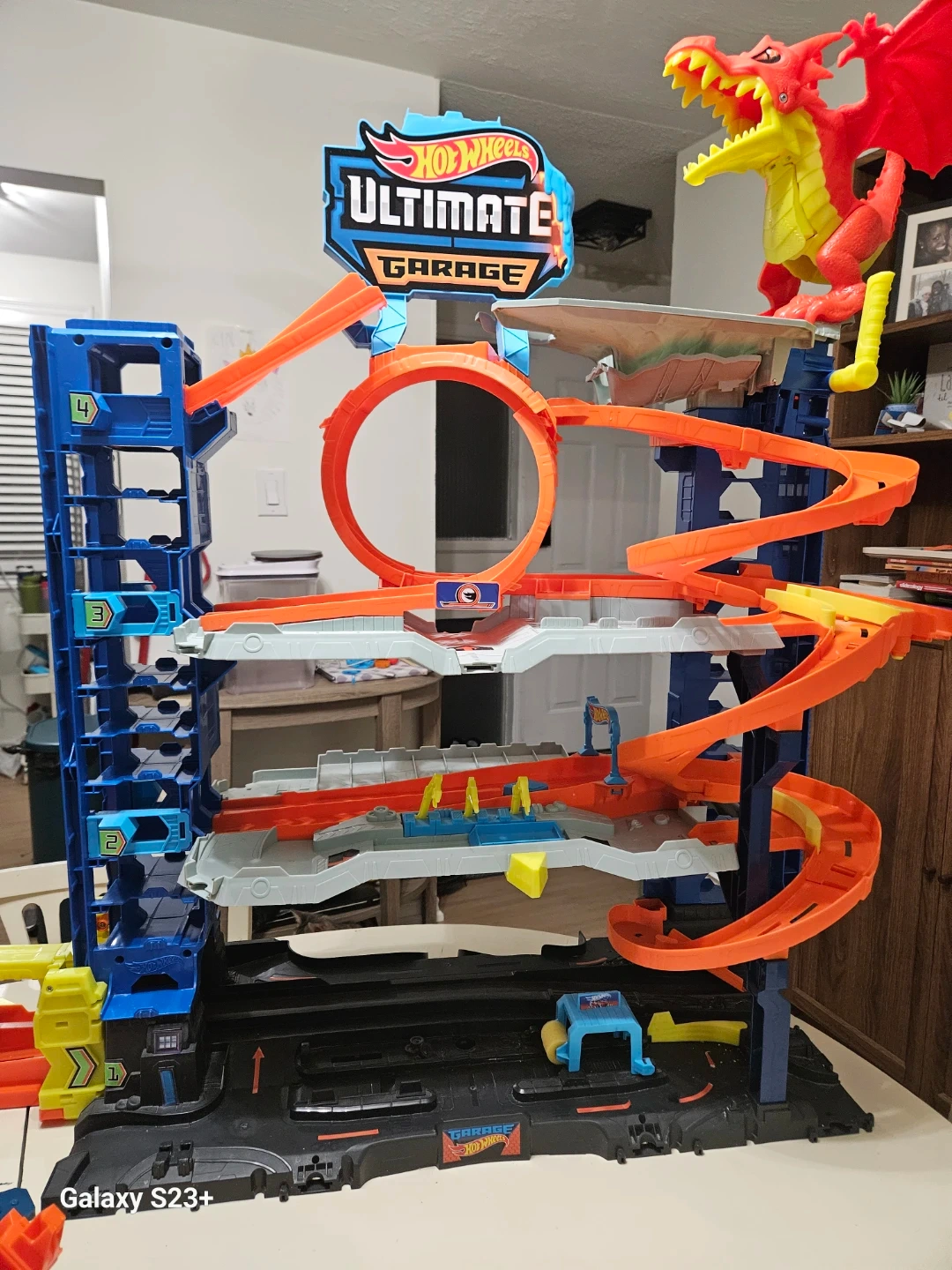 This multi-level Hot Wheels Ultimate Garage playset offers tons of racing fun! It's designed to hold and play with a large collection of Hot Wheels cars. Includes the main garage structure and various track pieces. Hours of imaginative play await!