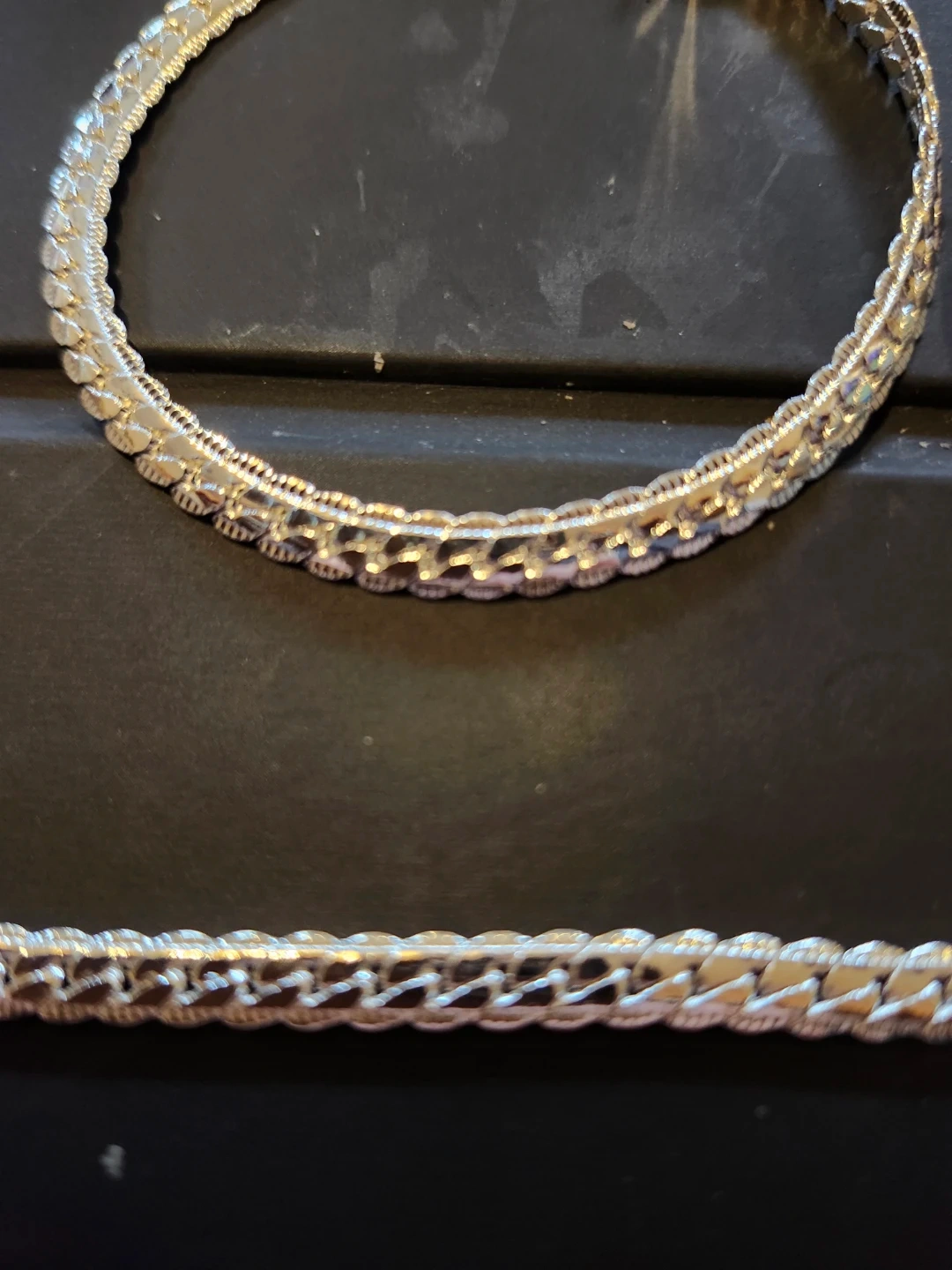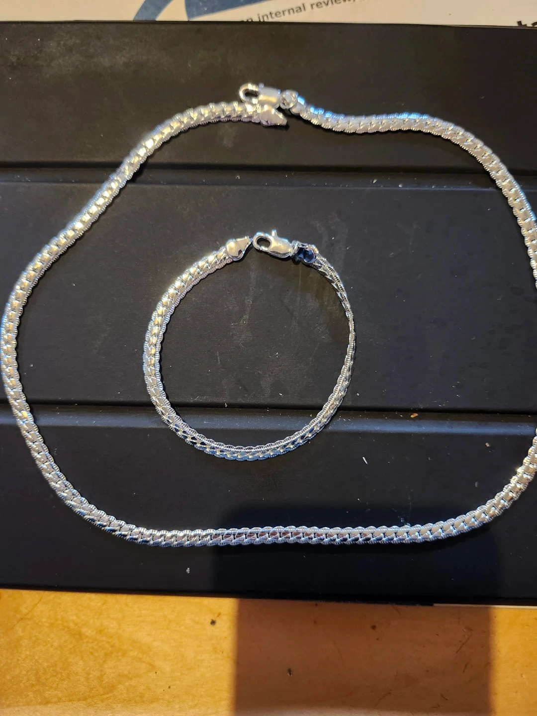 Selling a beautiful sterling silver necklace and bracelet set. Both pieces are marked '925' indicating sterling silver.