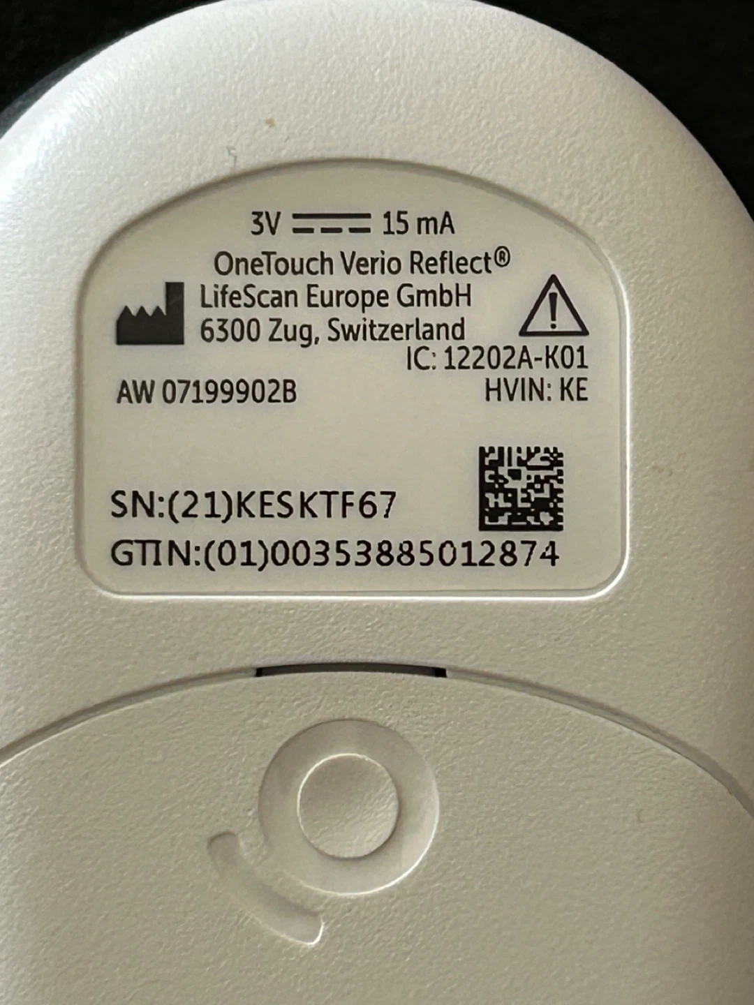 OneTouch Verio Reflect blood glucose meter. Includes meter, lancing device, and container of 50 test strips with an expiry date of 11/2025.