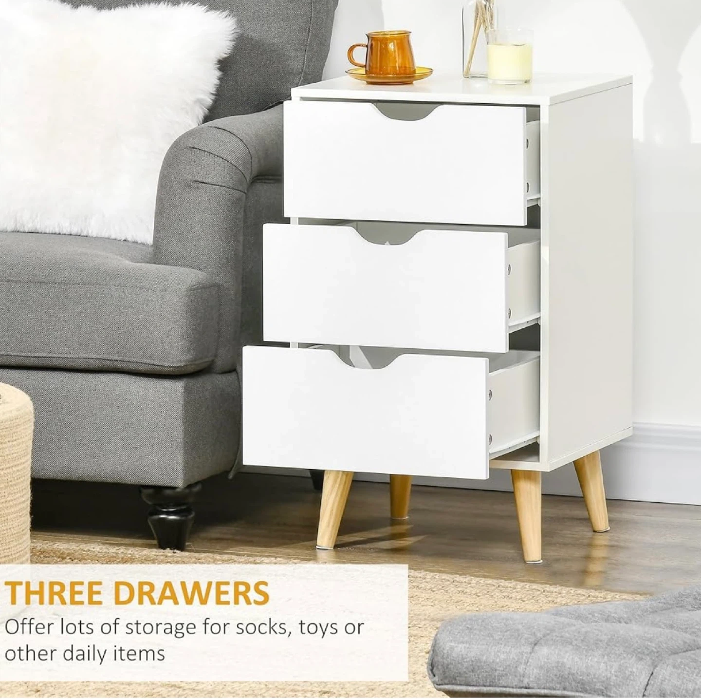 This Brand New in Box HOMCOM nightstand features three drawers and a sleek white finish, perfect for adding storage and style to any bedroom. With its modern design and practical functionality, it’s an excellent addition to your home decor.
