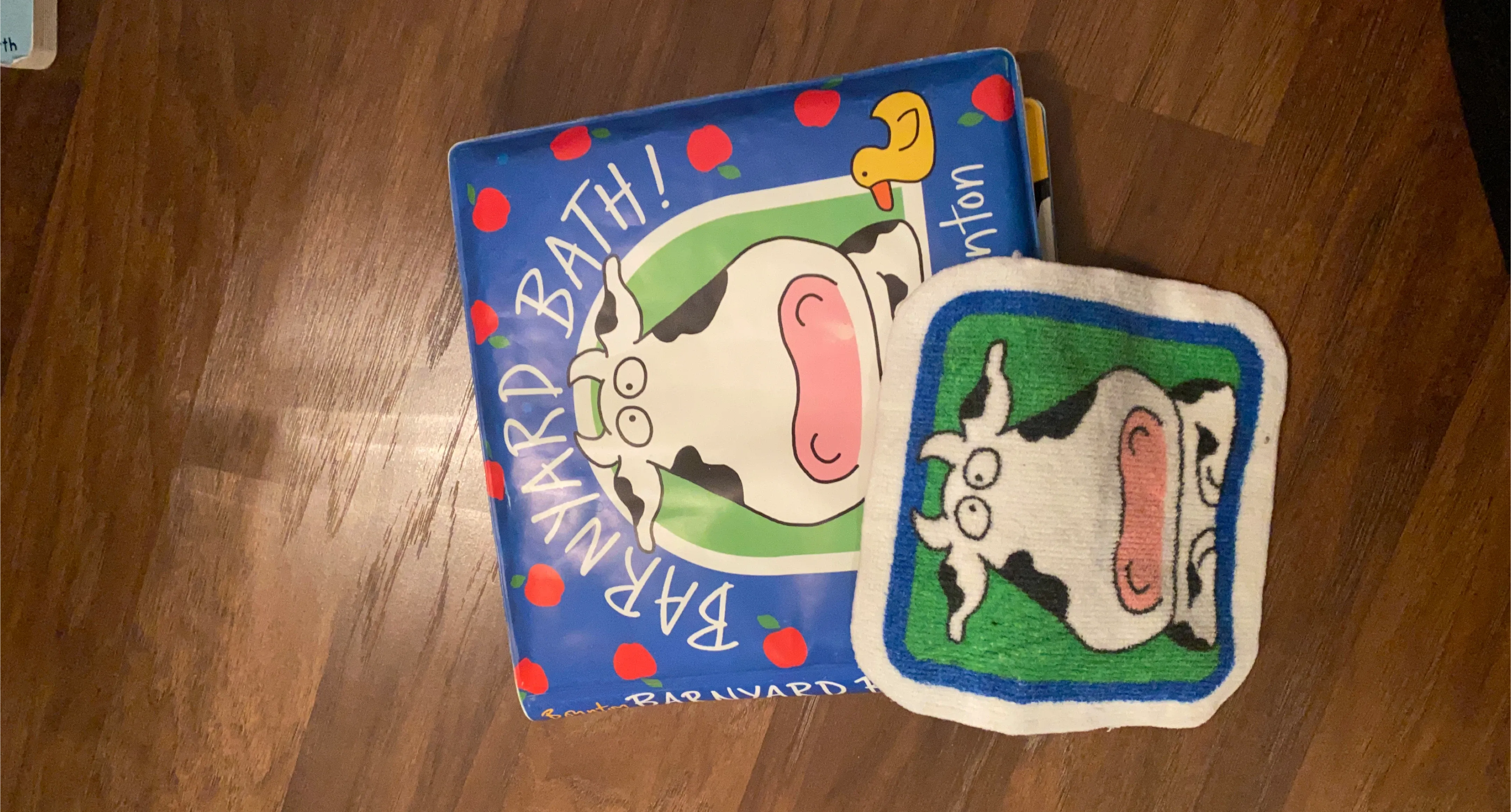 Selling a cute Barnyard Bath book and matching washcloth set! The book is a fun, interactive way to make bath time enjoyable for your little one. The washcloth features the same adorable cow design as the book. Perfect for babies and toddlers!
