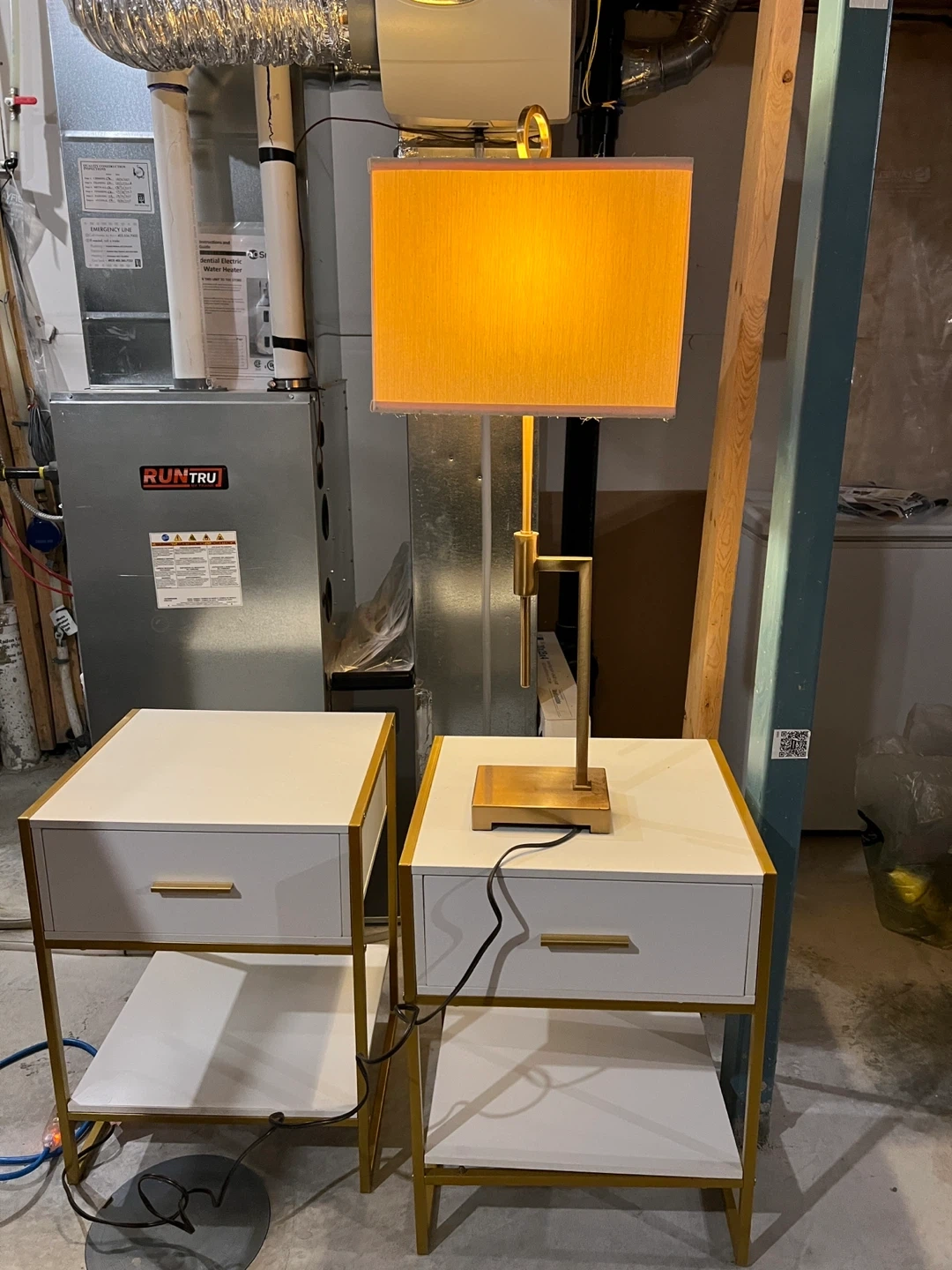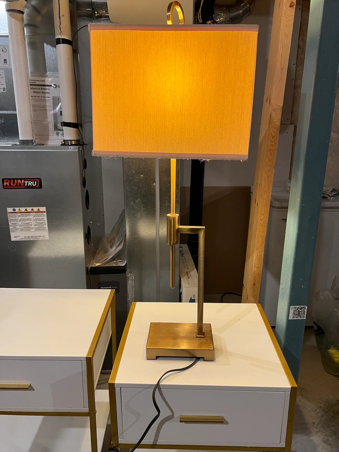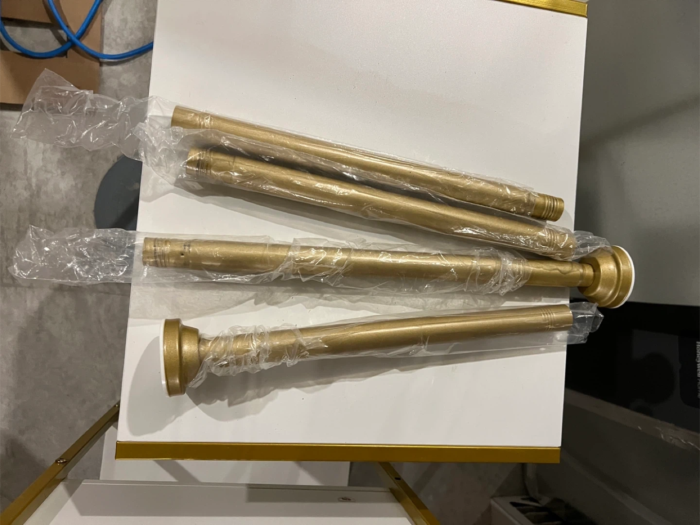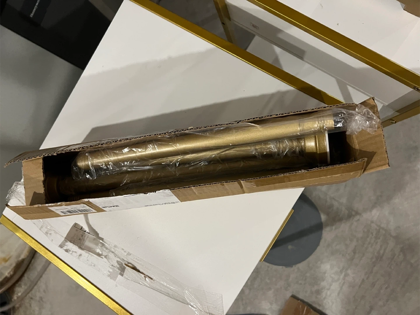 Selling a brand new table lamp with a gold finish! It was only used for two months and is assembled. Perfect for adding a touch of elegance to any room. A perfect table lamp and a shower curtain rod still in the box
