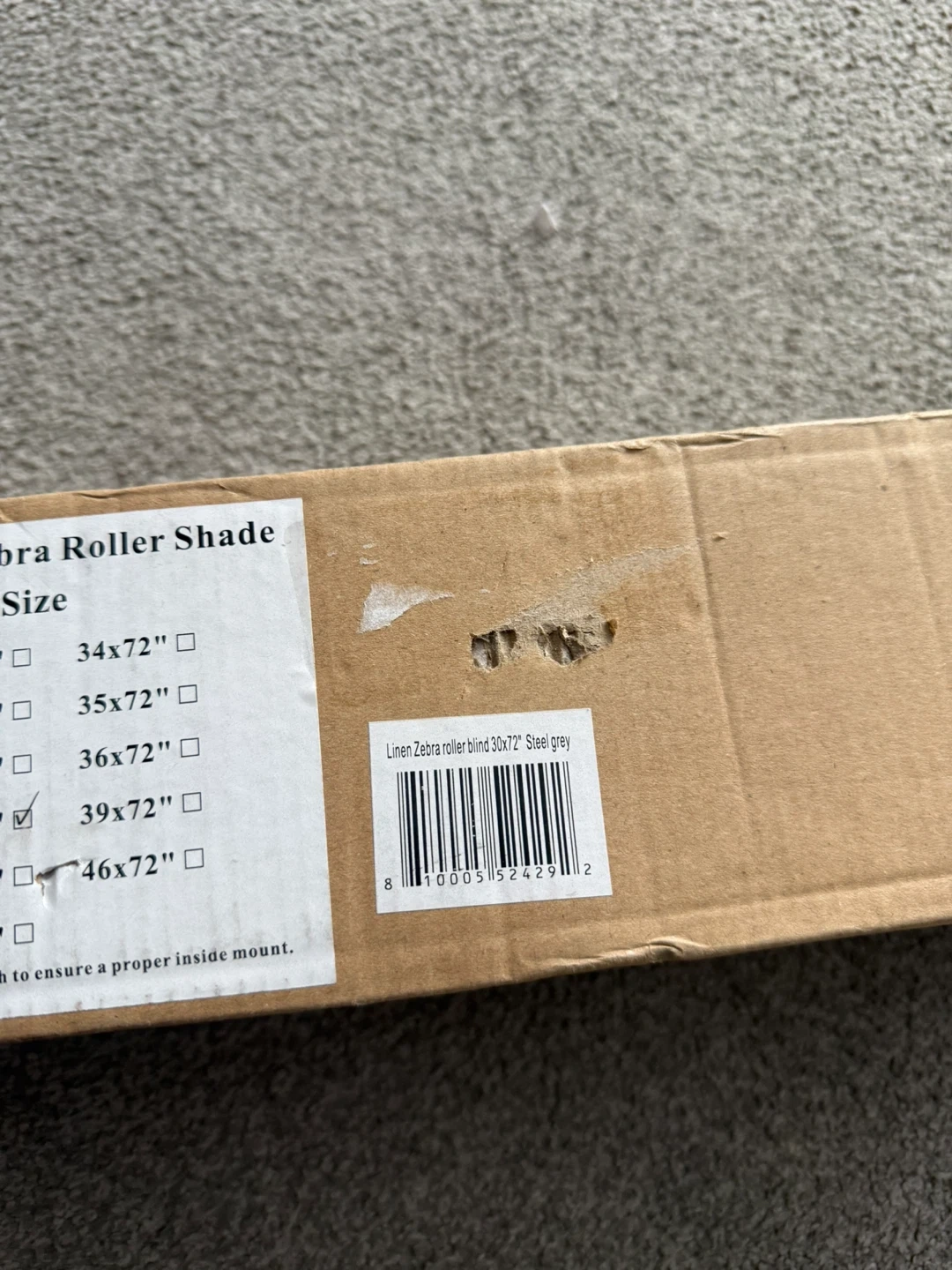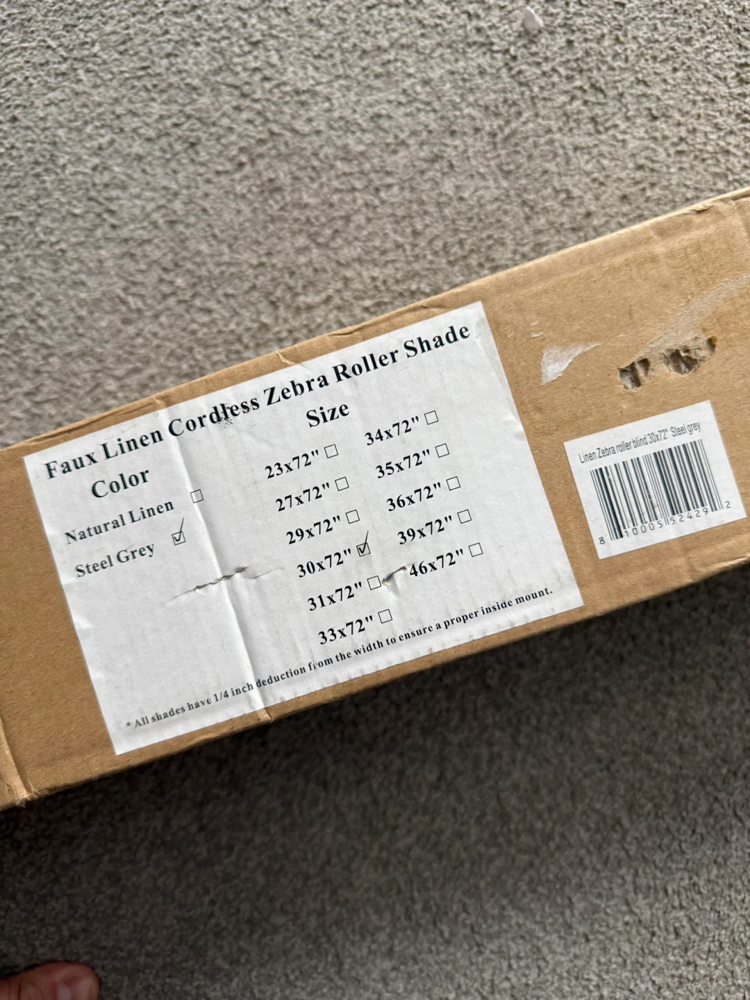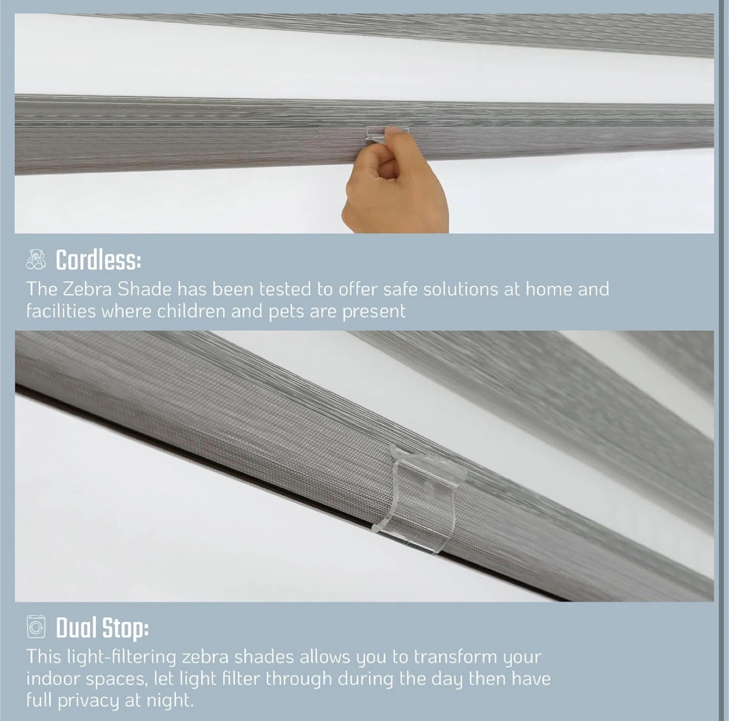 NEW Cordless Zebra Blinds, 30” W x 72” H, Steel Grey