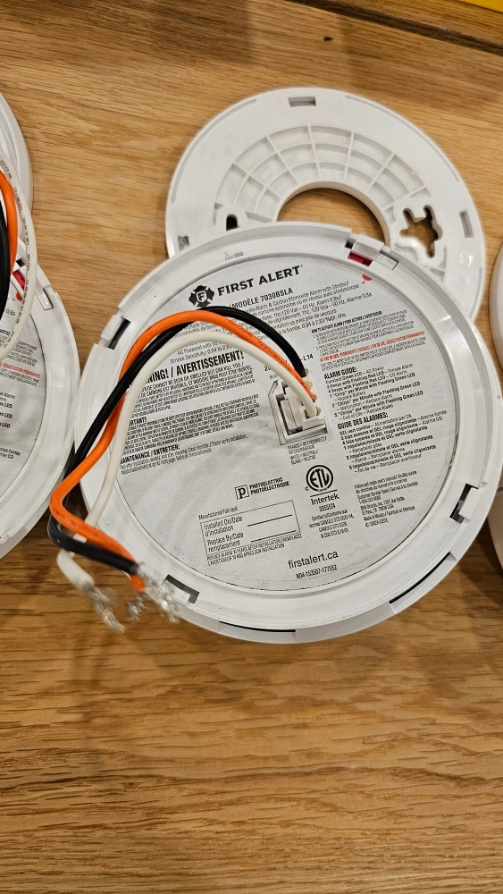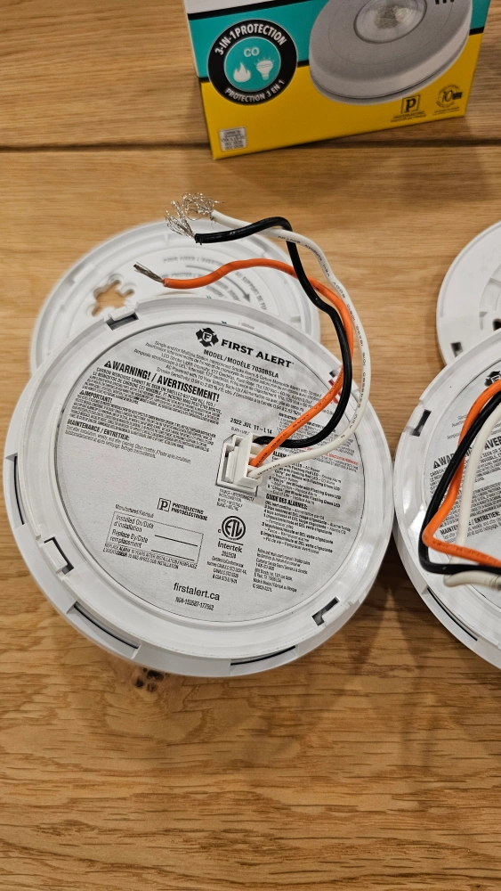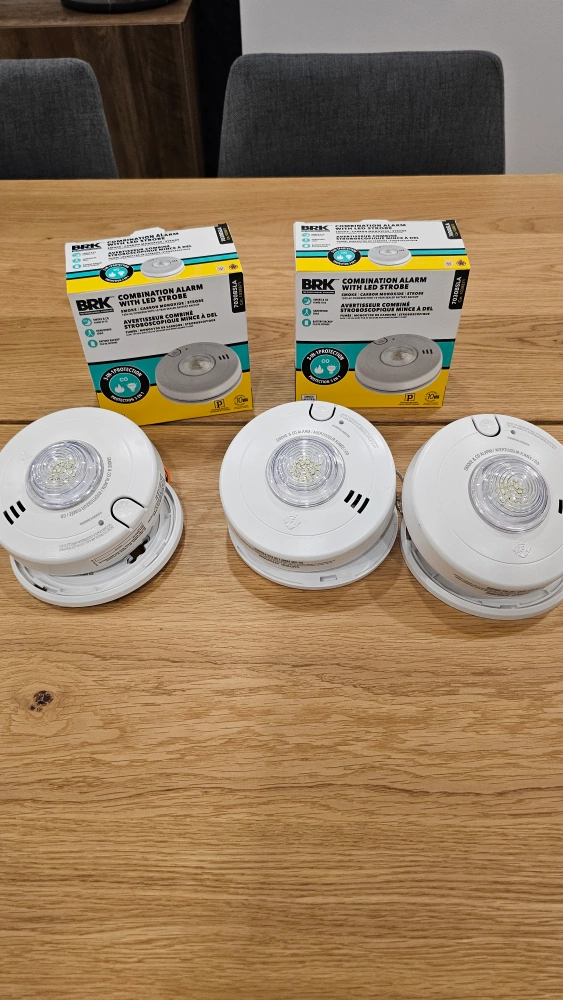 BRK 3-in-1 combination smoke alarm and carbon monoxide with strobe light. Hardwired and in good condition.