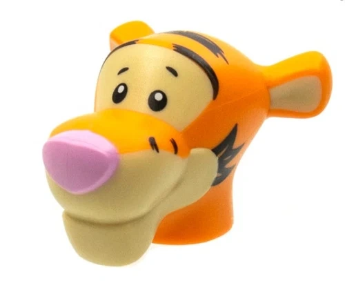 This listing is for ONE LEGO Tigger Minifigure Head from the LEGO Ideas 21326 Disney Winnie the Pooh set. It features an orange fur color with black stripes and eyes, and a bright pink nose pattern.