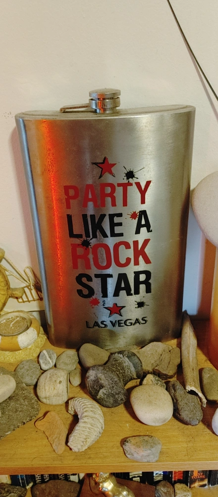 This stainless steel flask is ready for a night out! It features a fun design that says "Party Like A Rock Star" and "Las Vegas". It's perfect for adding a little fun to your next adventure