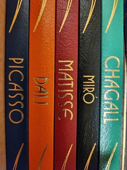 Preference will be given to those who take the lot. Picasso- $55, Dali- $70, Matisse- $60, Miro- $45, Chagall- $90. Very good condition. Leather-bound with 22k gold gilding on page edges. Excellent archival quality paper with satin bookmark. Made to last.