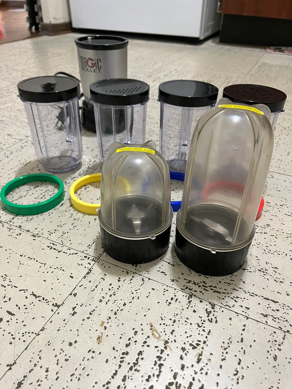 Fairly used 17-piece high-speed mixing system chops, whips, blends, and more. Cups are made out of high-impact plastic . In seconds, you'll have chopped onions, minced garlic, grated cheese, spaghetti sauce, salsa, soup, chicken salad, smoothies, shakes and more