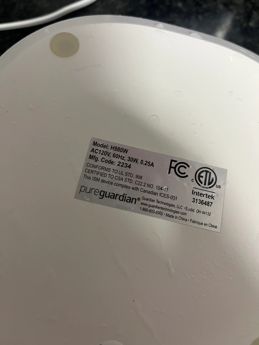 Selling a PureGuardian H980W 70-Hour Ultrasonic Cool Mist Humidifier. It's white and in great condition! The model number is H980W. I bought this online for $99.98 plus tax ($115.00)