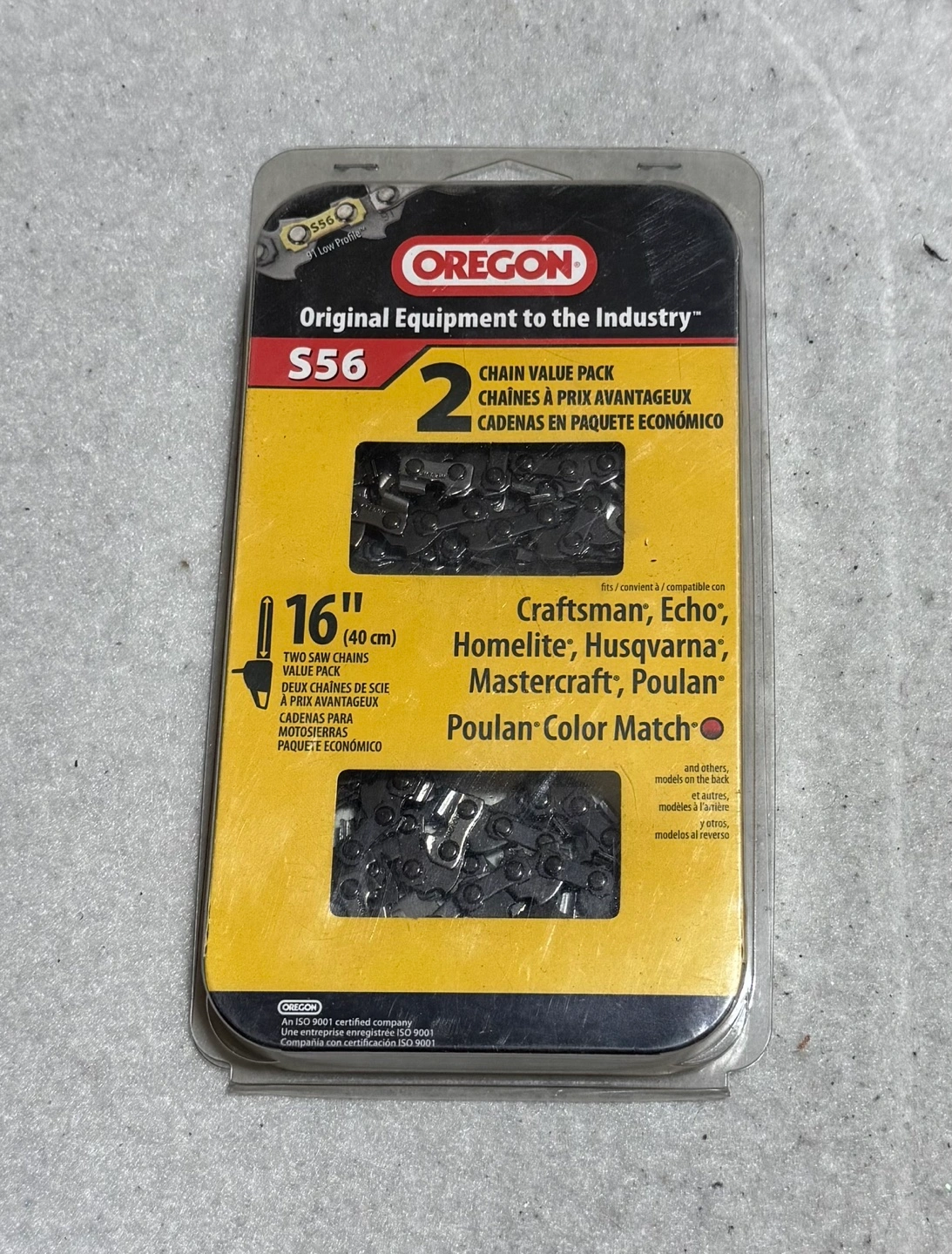 Two 16" Oregon S56 chainsaw chains. Low profile. Fits Craftsman, Echo, Homelite, Husqvarna, Mastercraft, Poulan, and Poulan Color Match. Value pack come with two chains, let me know if you have any questions.