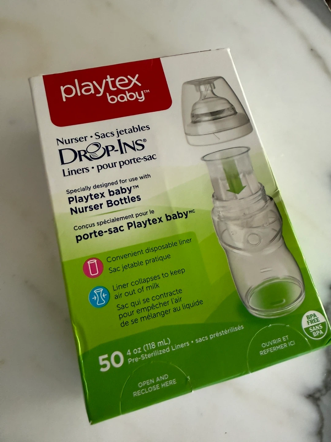Playtex Baby Drop-Ins pre-sterilized liners. These liners collapse to keep air out of milk, and they're specially designed for use with Playtex baby nurser bottles. They're convenient for on-the-go feeding!