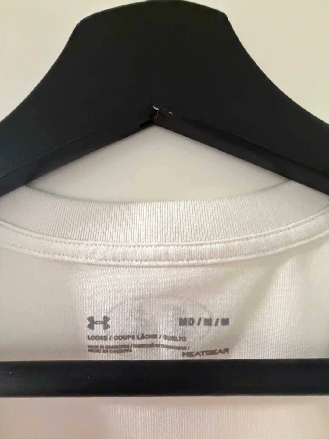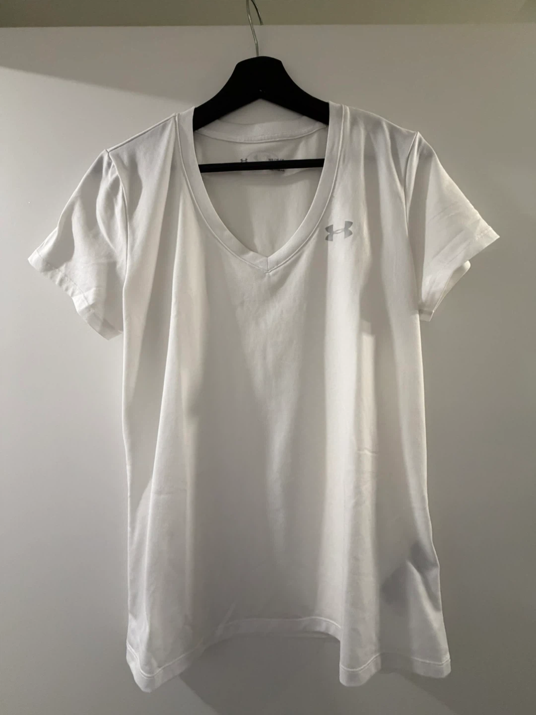White Under Armour V-neck t-shirt. Size MD/M. Made with HeatGear fabric. Loose fit. Selling a bundle of 3 for $20