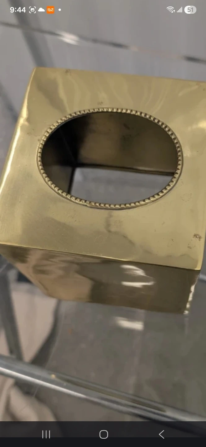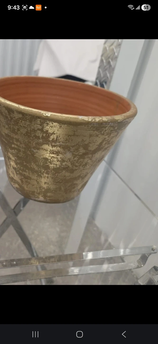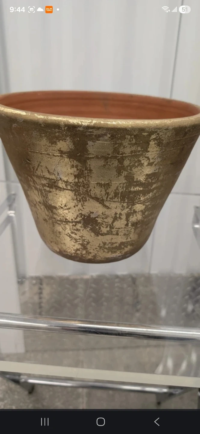 A set of two decorative containers. Includes a terracotta pot with a distressed gold finish and a square bin with ornate gold trim. These pieces add a touch of elegance to any space.