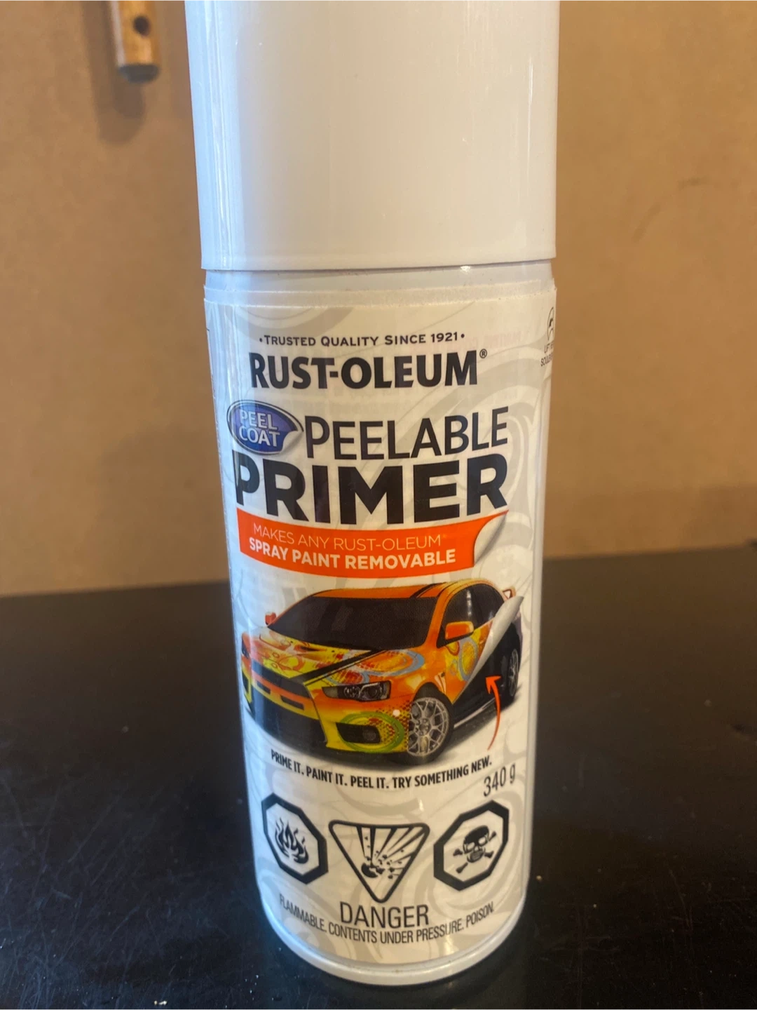 Selling Rust-Oleum Peel Coat Primer spray paint. Makes any rust-oleum spray paint removable. 340g cans