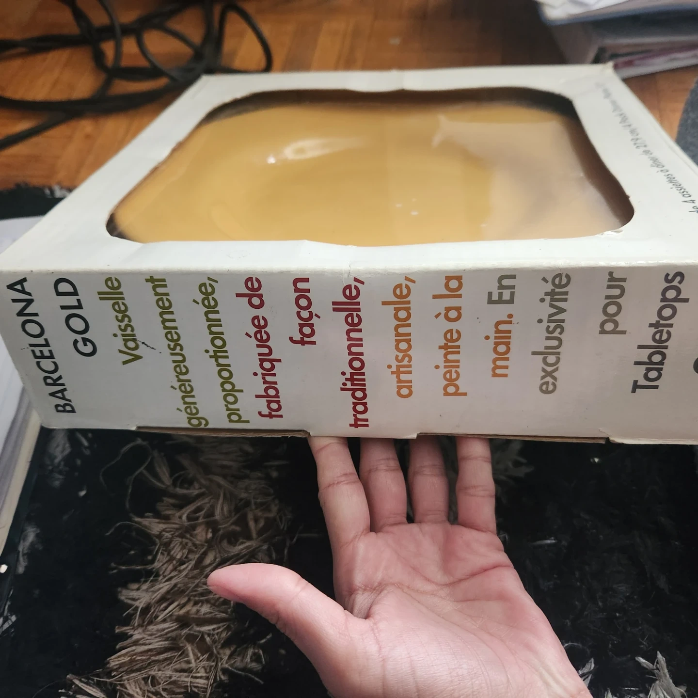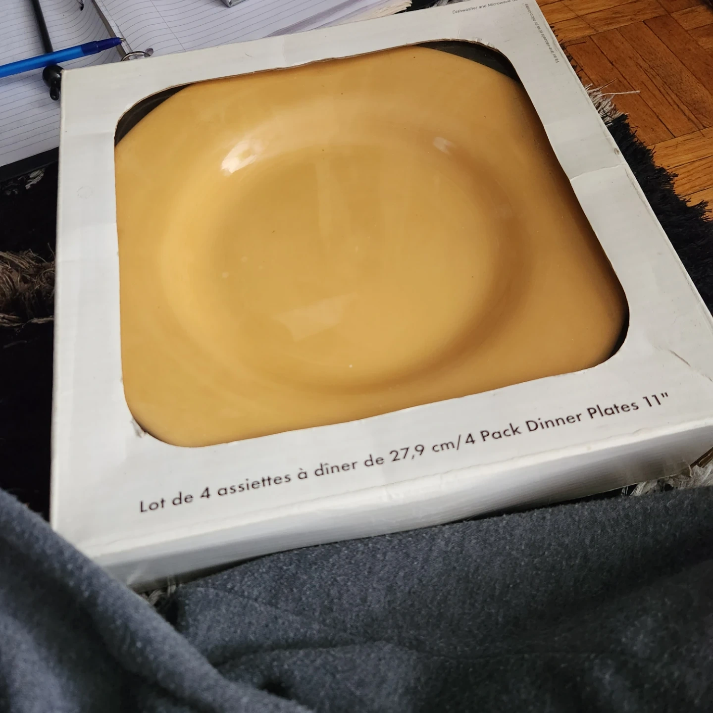 Box is slightly damaged, plates are pristine condition and ready for a new home