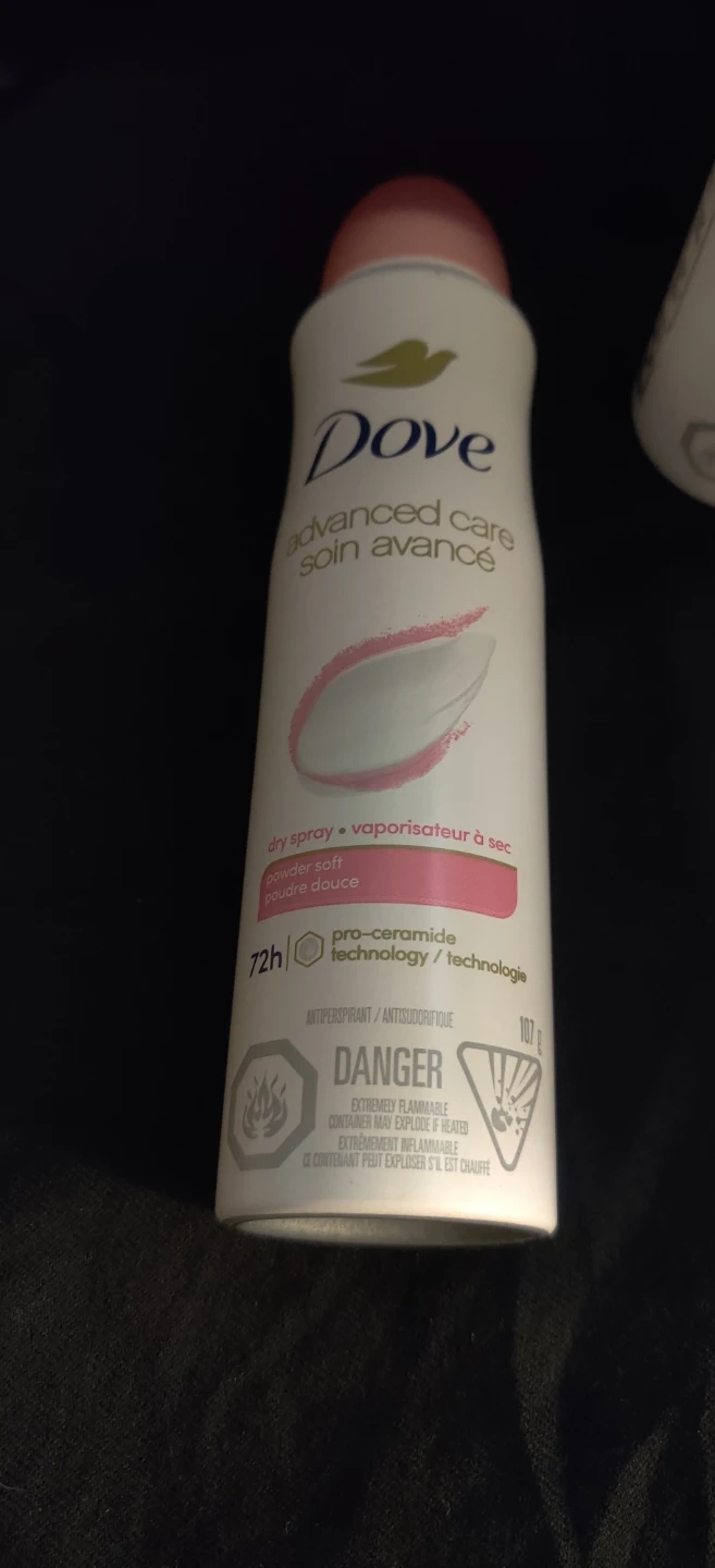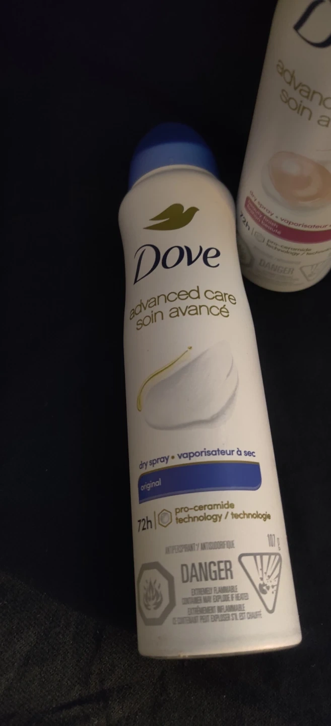 These Dove Advanced Care dry spray antiperspirant comes in a 107g can. The features pro-ceramide technology for 72-hour protection. All 3 are antiperspirant/deodorant spray.