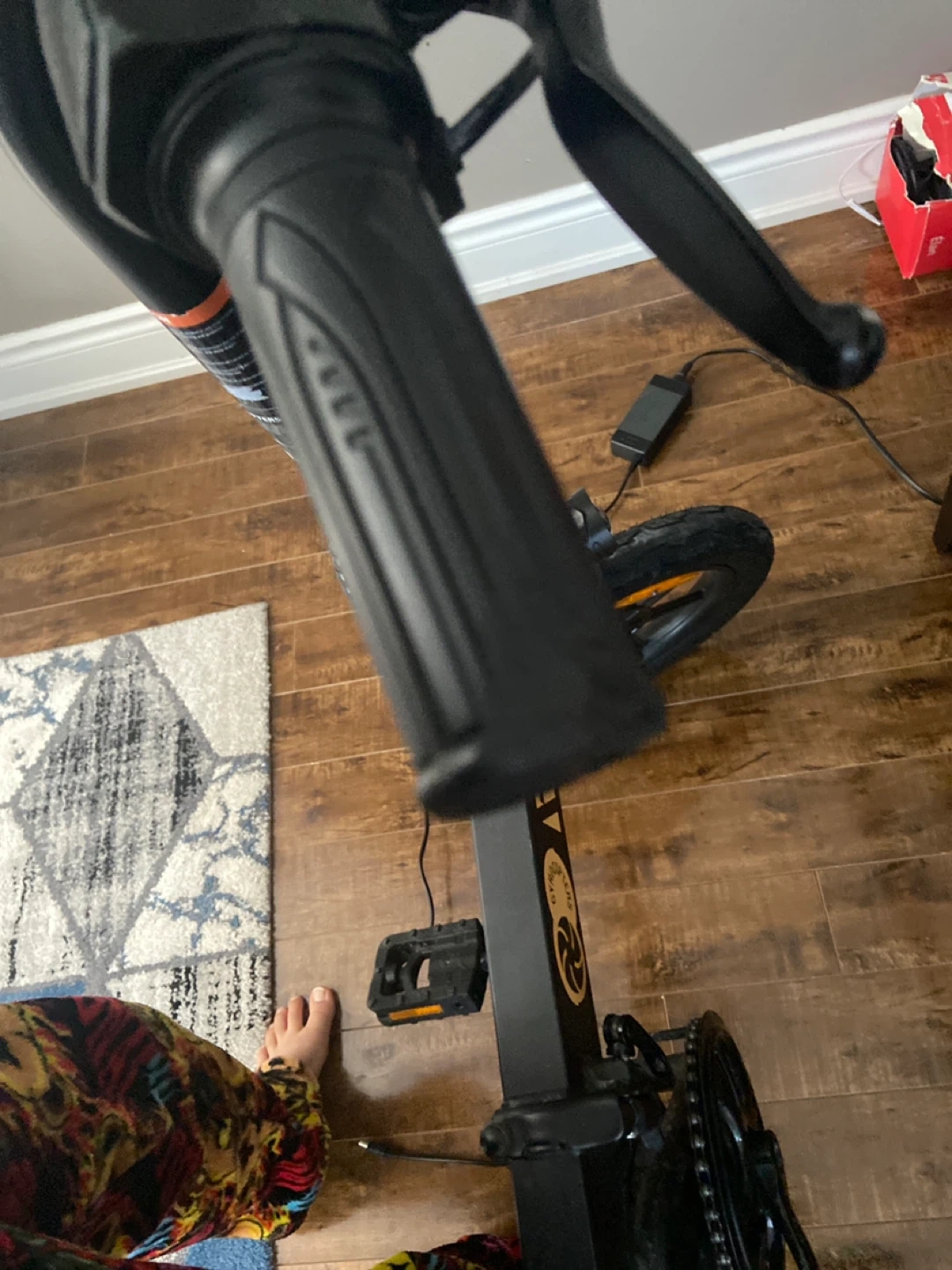 This is a RIZZ brand electric folding bike. It comes with its charger. It's great for getting around town!