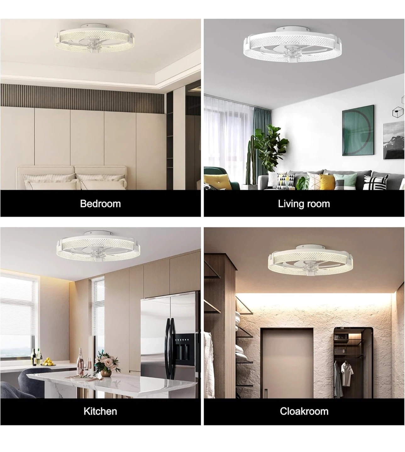 19.7" White Ceiling Fan with Lights, Dimmable LED, DC Motor CF19
