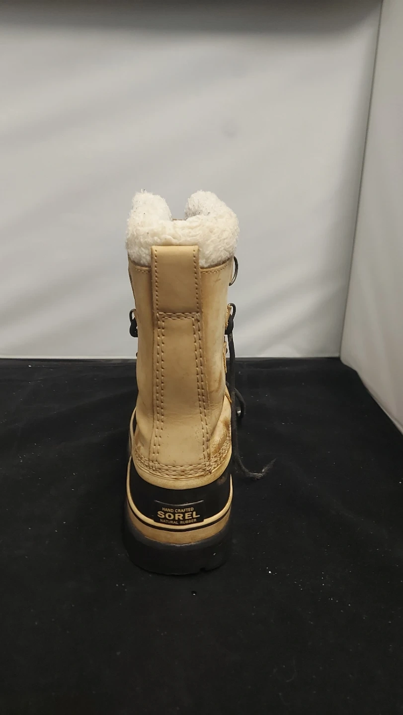 These Sorel winter boots are tan leather with black rubber bottoms and a white sherpa lining. They're insulated for cold weather. They're great for staying warm and dry during winter months! Pre owned & open to negotiate.