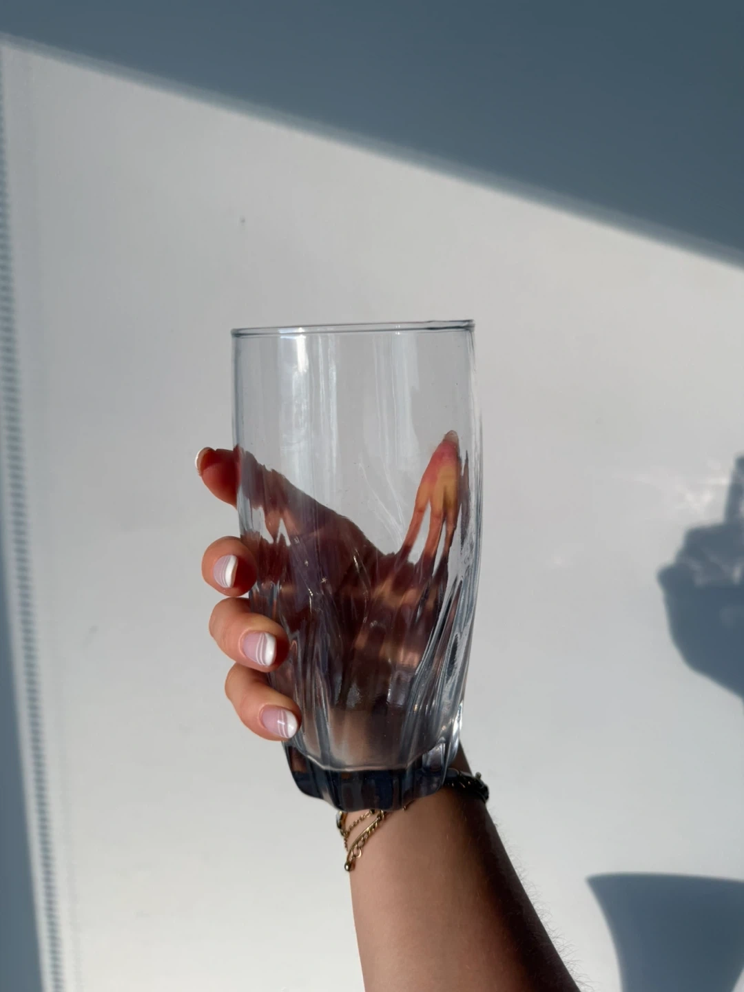 These clear drinking glasses feature a unique swirl pattern on the lower half. It's a set of three, perfect for everyday use or entertaining guests. Glass material.