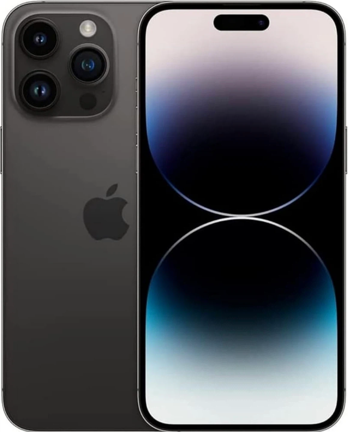Apple iPhone 14 Pro Max in Space Black. It features a 6.7-inch Super Retina XDR display with Always-On and ProMotion. This phone has a powerful A16 Bionic chip and a Pro camera system.