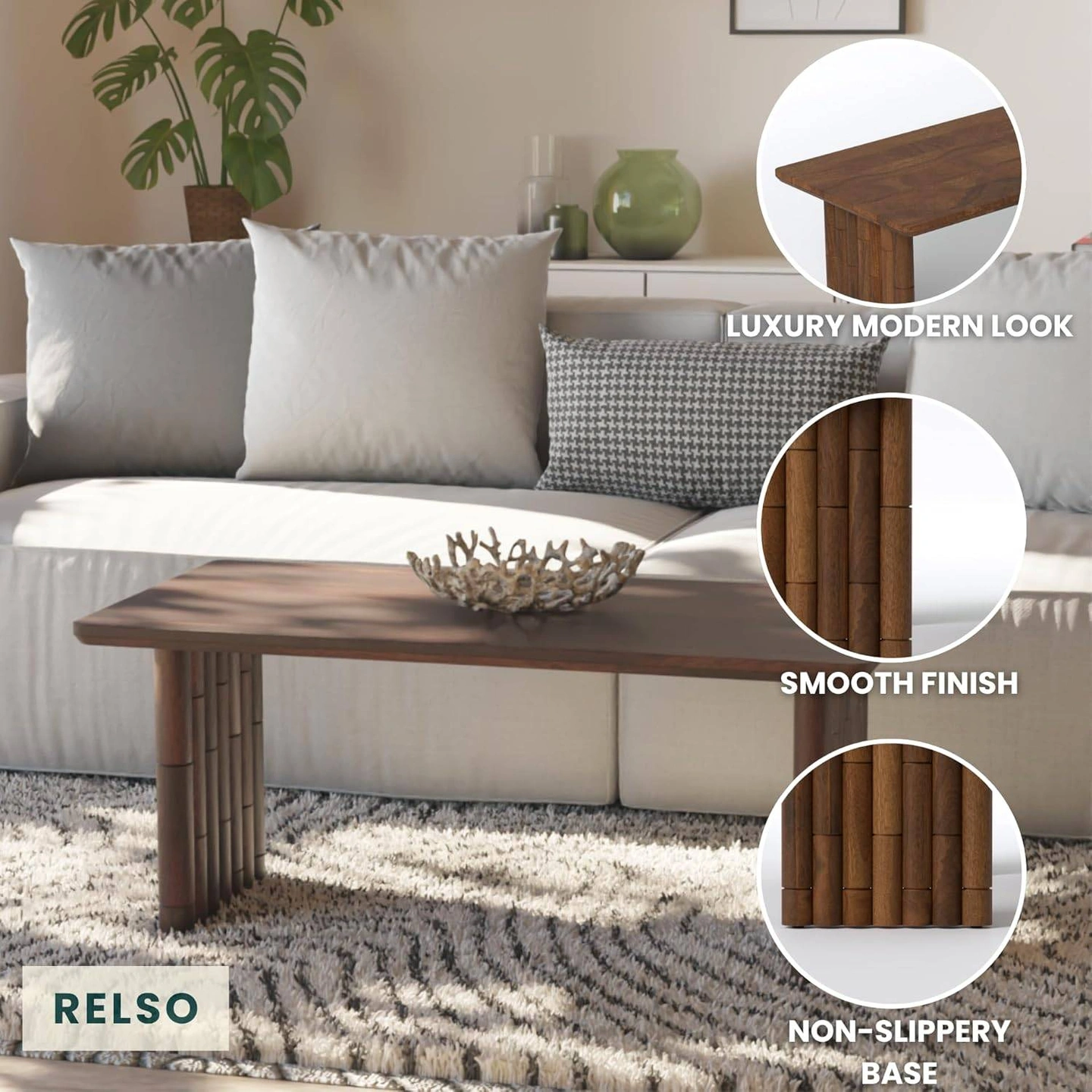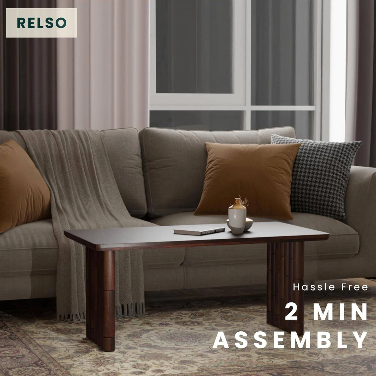 Selling a Relso coffee table that's perfect for both large and small spaces! It features a solid mango wood construction and has a hassle-free 2-minute assembly. The table's dimensions are 42 inches by 22 inches, with a height of 18.5 inches