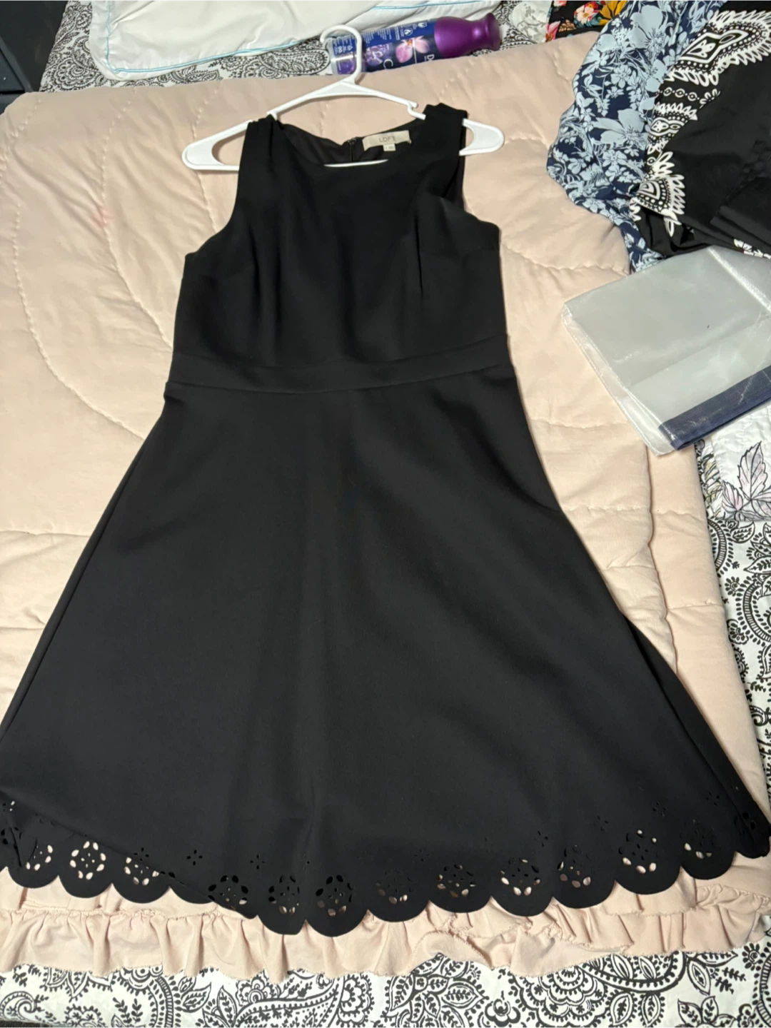 This is a5 black bandage dresses. It features a V-neckline and a knee-length hem. Made from a stretchy material for a snug fit.