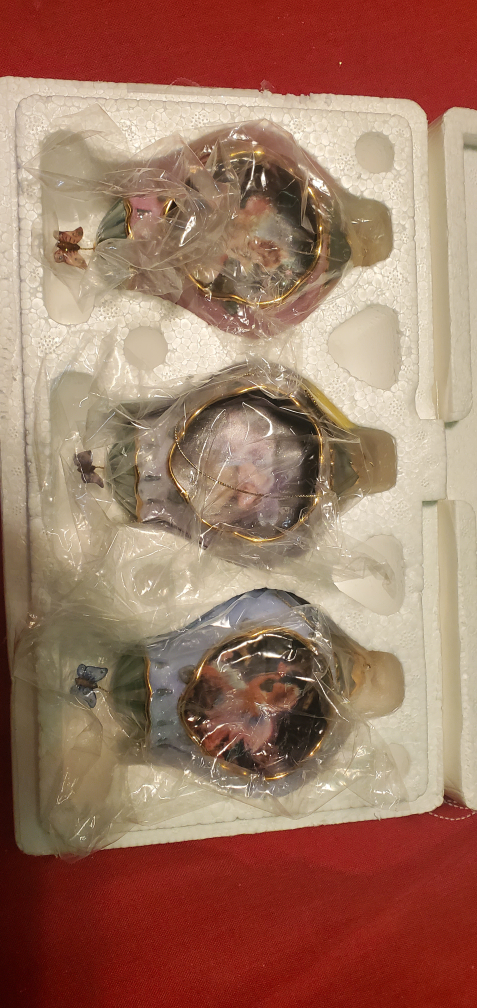 Beautiful set of 3 Heirloom Porcelain 2000 Bradford Edition Fairy Tree Ornaments. Gorgeous handpainted designs that will be the perfect addition to your tree or will make a lovely gift. Brand new and never used. Pickup in Mississauga. Accepting E-Transfer or Cash.
