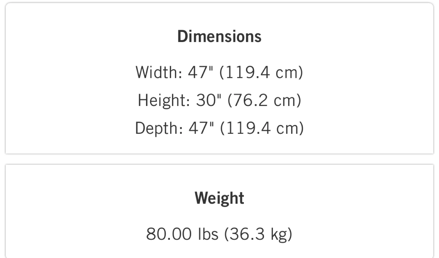 - Width: 47 inches (119.4 cm)