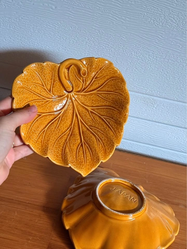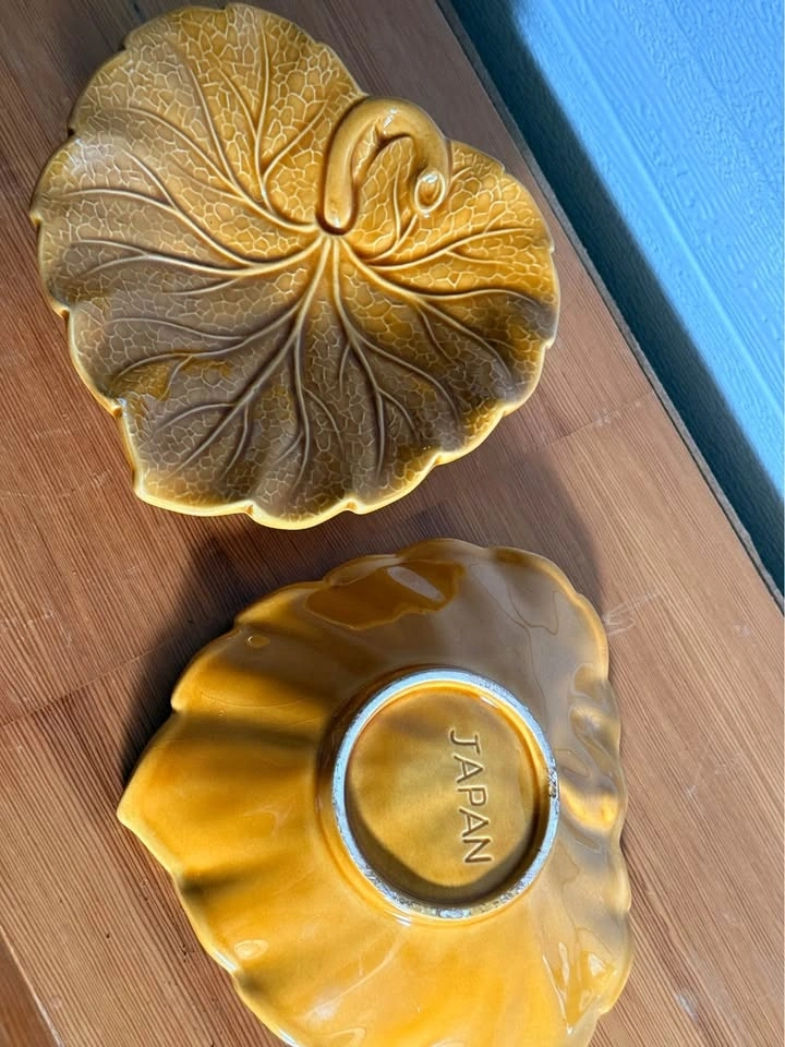 Buy & SellPair of Vintage Ceramic Leaf Dishes JapanPair of Vintage Ceramic Leaf Dishes Japan$10Cute pair of ceramic leaf petite dishes in a warm amber color with a detailed leaf design. Made in Japan. Good for decor or serving small snacks.WHERE TO MEETCheck LocationView MapSELLERverifiedDorianaHanlon Creek650 reviews0 chats·0 favorites·0 viewsSEND CHAT TO SELLERHi Doriana! I’m interested in your listing.Hi Doriana! I’m interested in your listing.Get the Karrot app to chatSign In to chat
