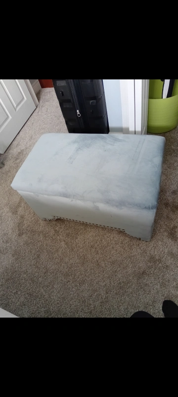 Here's a handy storage ottoman! It's in good condition and the perfect size for storing blankets, pillows, or anything else you need to tuck away