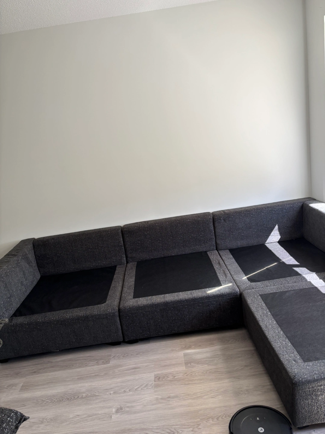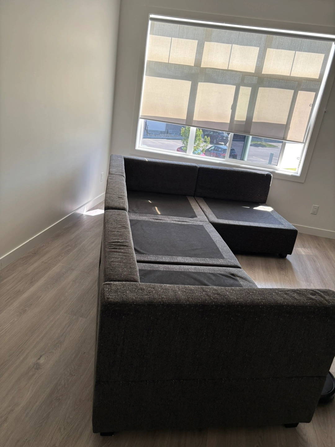 PET FREE HOME !! Selling a comfortable grey sectional sofa, complete with an ottoman! ready to find a new home. Perfect for lounging and adding a touch of style to your living space . OBO .