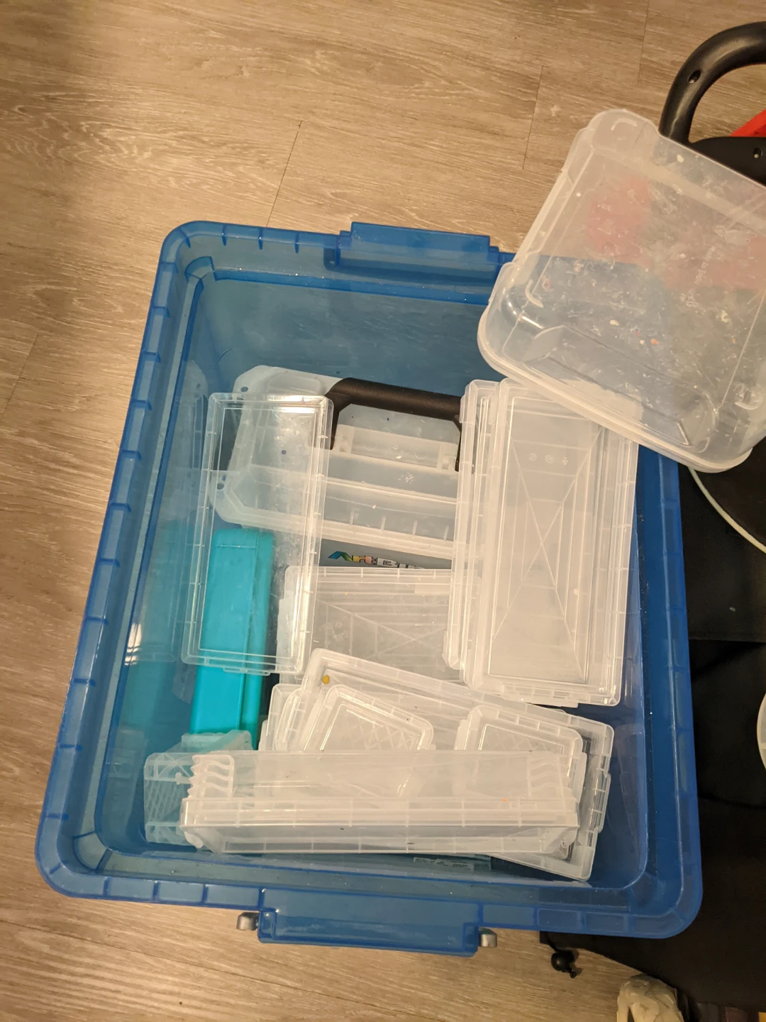 This set includes multiple clear plastic storage bins and lids, perfect for organizing small items. They're made of durable plastic and stackable for convenience. Great for crafts or small parts!