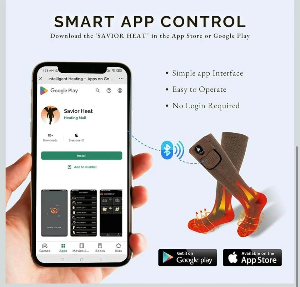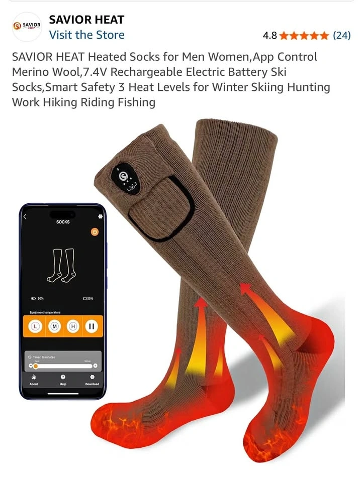SAVIOR HEAT Heated Socks - App Control, Merino Wool, Rechargeabl
