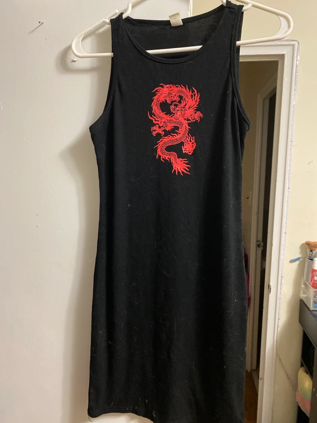 Buy & SellBlack Sleeveless Dress with Red Dragon GraphicBlack Sleeveless Dress with Red Dragon Graphic$3This sleeveless black dress features a striking red dragon graphic on the front. It's made of a ribbed fabric. Size is not visible.ConditionLike newSizeSWHERE TO MEETCedarbrae MallView MapSELLERverifiedReignCedarbrae Mall68171 reviews0 chats·0 favorites·11 viewsSEND CHAT TO SELLERHi Reign! I’m interested in your listing.Hi Reign! I’m interested in your listing.Get the Karrot app to chatSign In to chat