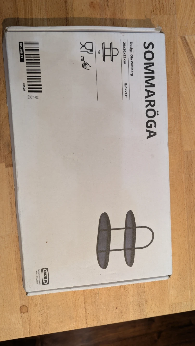 This is the IKEA SOMMARÖGA plate stand, designed by Ola Wihlborg. It's black and measures 20x50x33 cm. This stand is great for displaying your favourite plates!