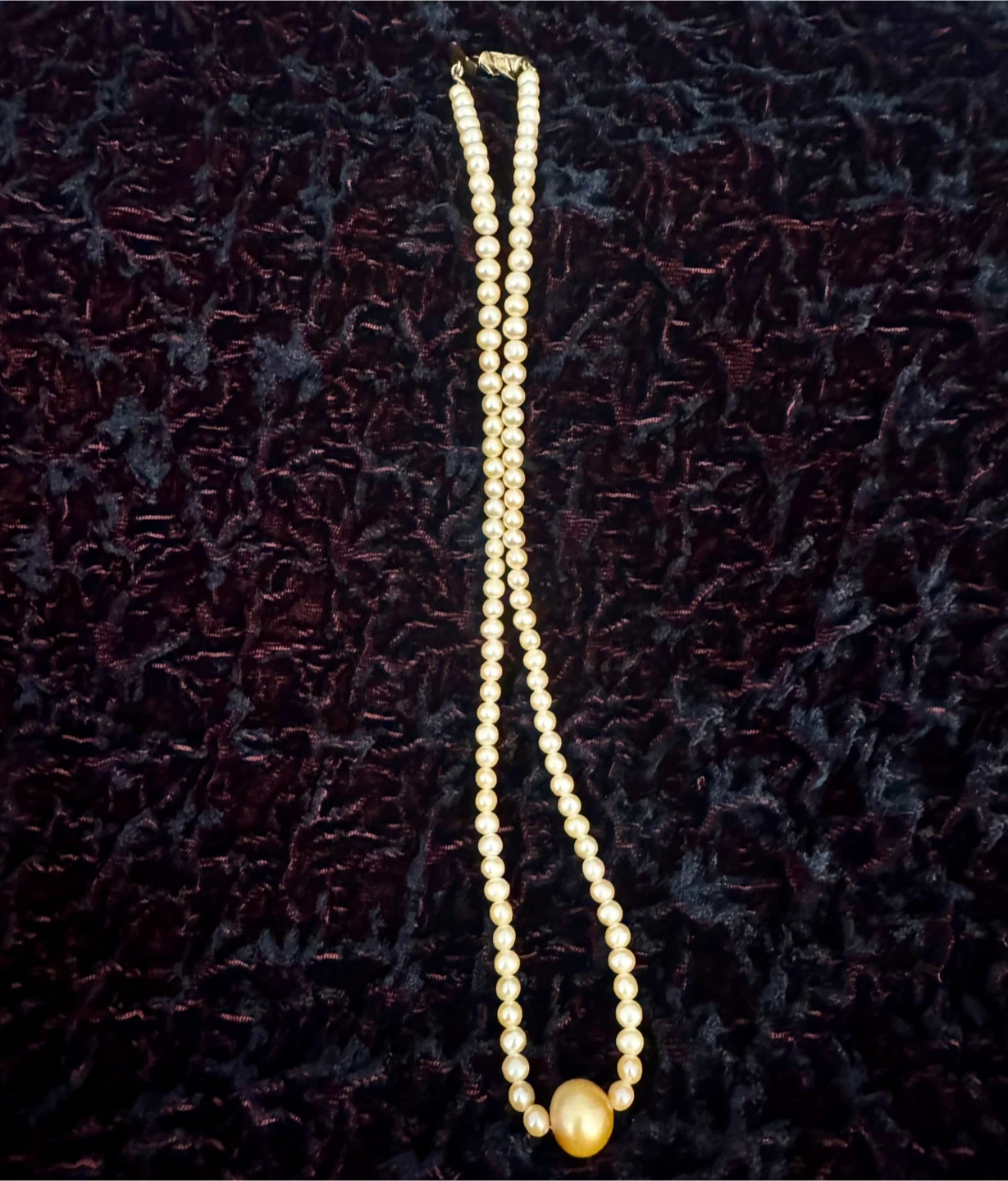 Beautiful natural pearl necklace featuring a larger central pearl with smaller pearls graduating toward the clasp. A timeless and refined design with a soft, luminous finish.