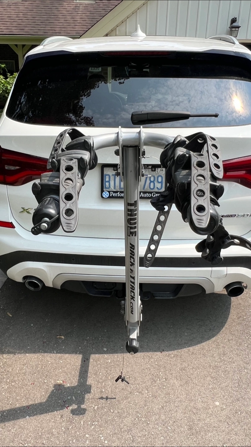 Securely holds 2 or 3 bikes and fits a 2” or 1 1/4” receiver hitch. In excellent working order. Comes with manual and keys. Missing 1 strap. Costs over $500 new. Can meet at a Tim Hortons in north west Burlington.