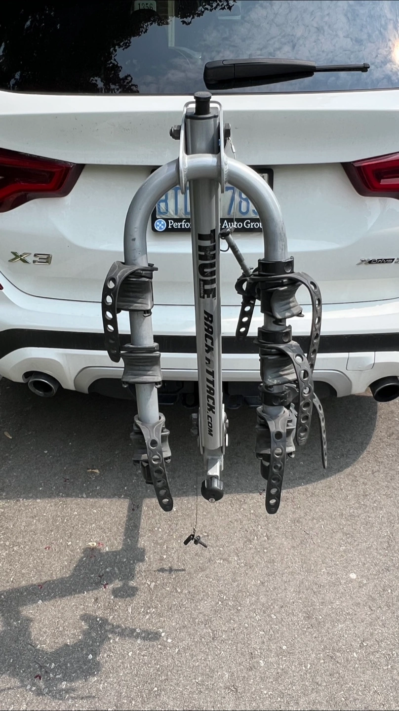 Securely holds 2 or 3 bikes and fits a 2” or 1 1/4” receiver hitch. In excellent working order. Comes with manual and keys. Missing 1 strap. Costs over $500 new. Can meet at a Tim Hortons in north west Burlington.