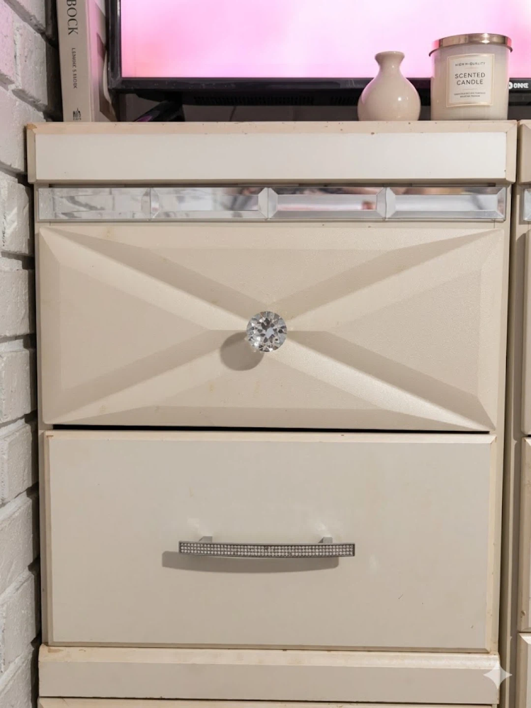 ✨Bling Handles: Crystal-embellished pulls on every drawer.