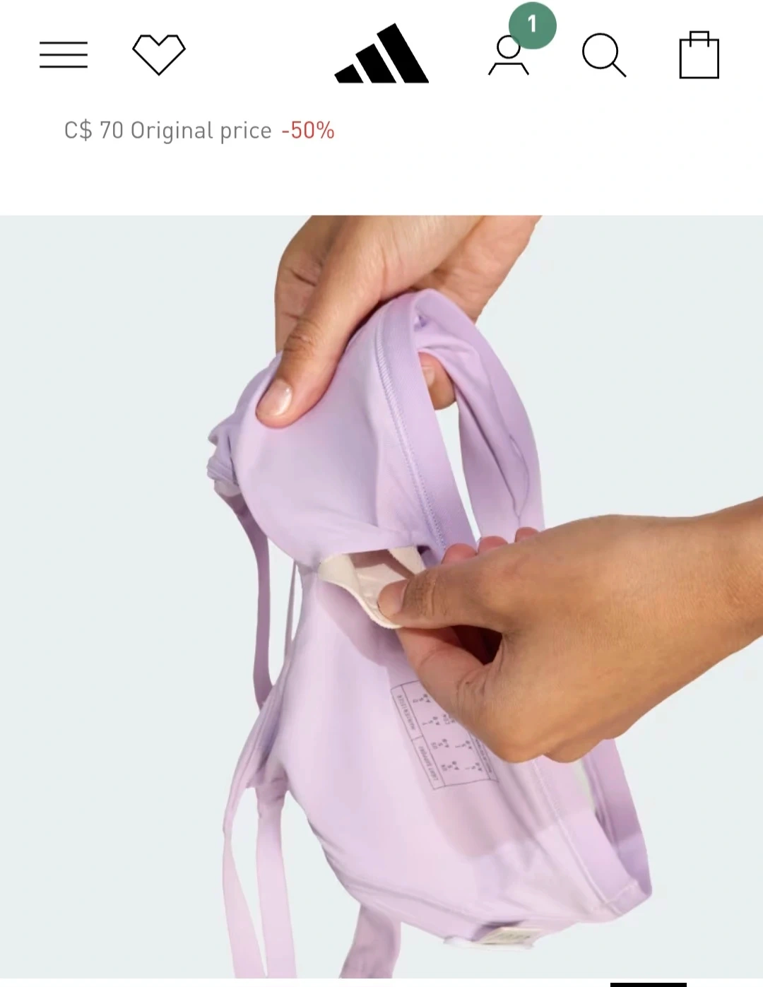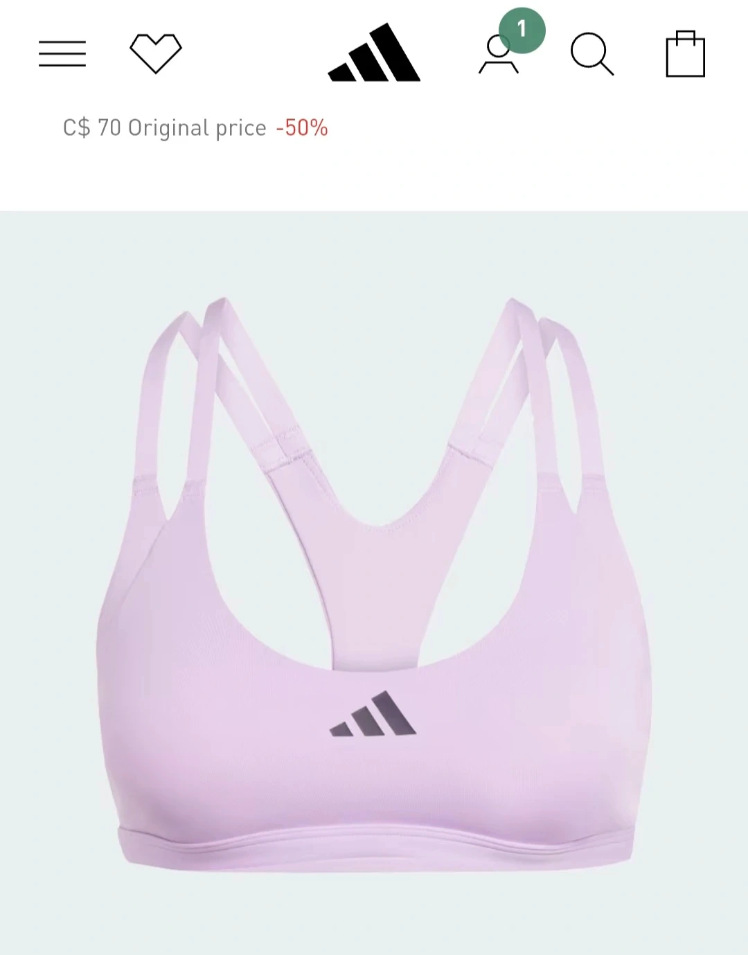 This Adidas Aeroknit sports bra offers light support and comes in a lovely lavender colour! It's a size M (A-B).