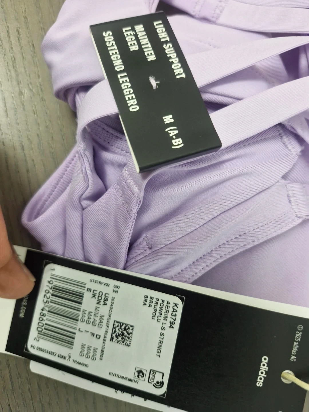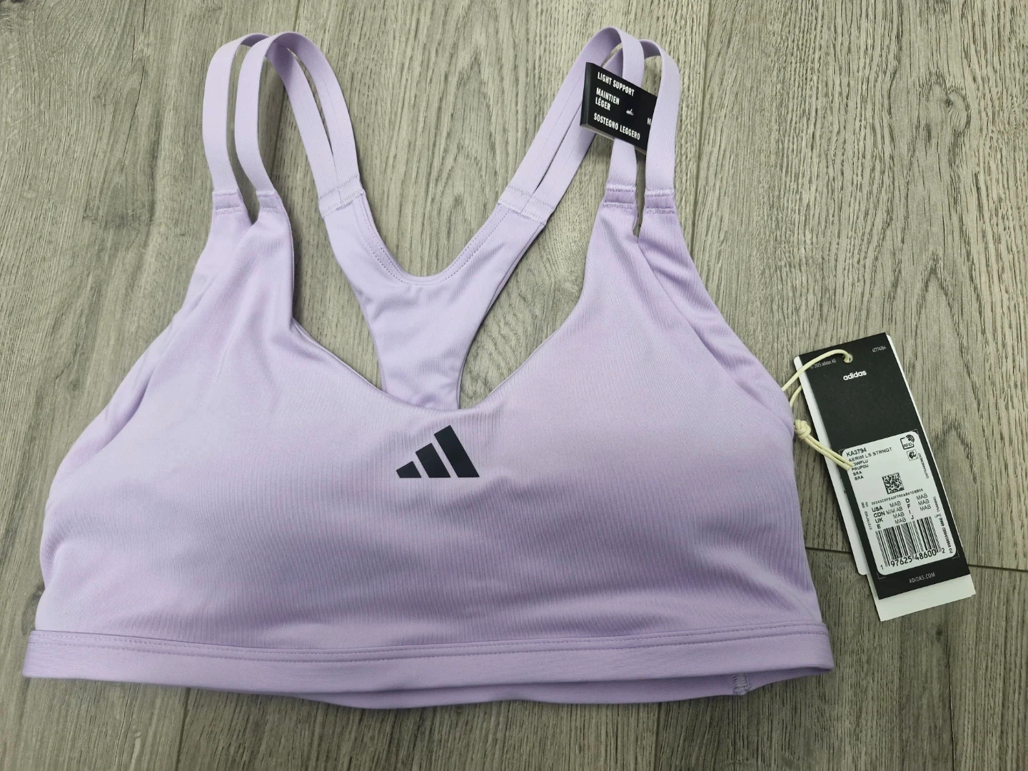 This Adidas Aeroknit sports bra offers light support and comes in a lovely lavender colour! It's a size M (A-B).