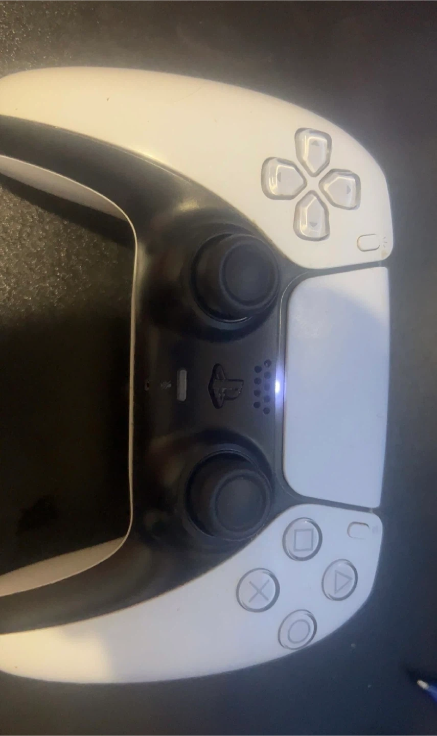 This is a white PlayStation 5 DualSense wireless controller. It features adaptive triggers and haptic feedback for an immersive gaming experience. The controller connects wirelessly to your console.