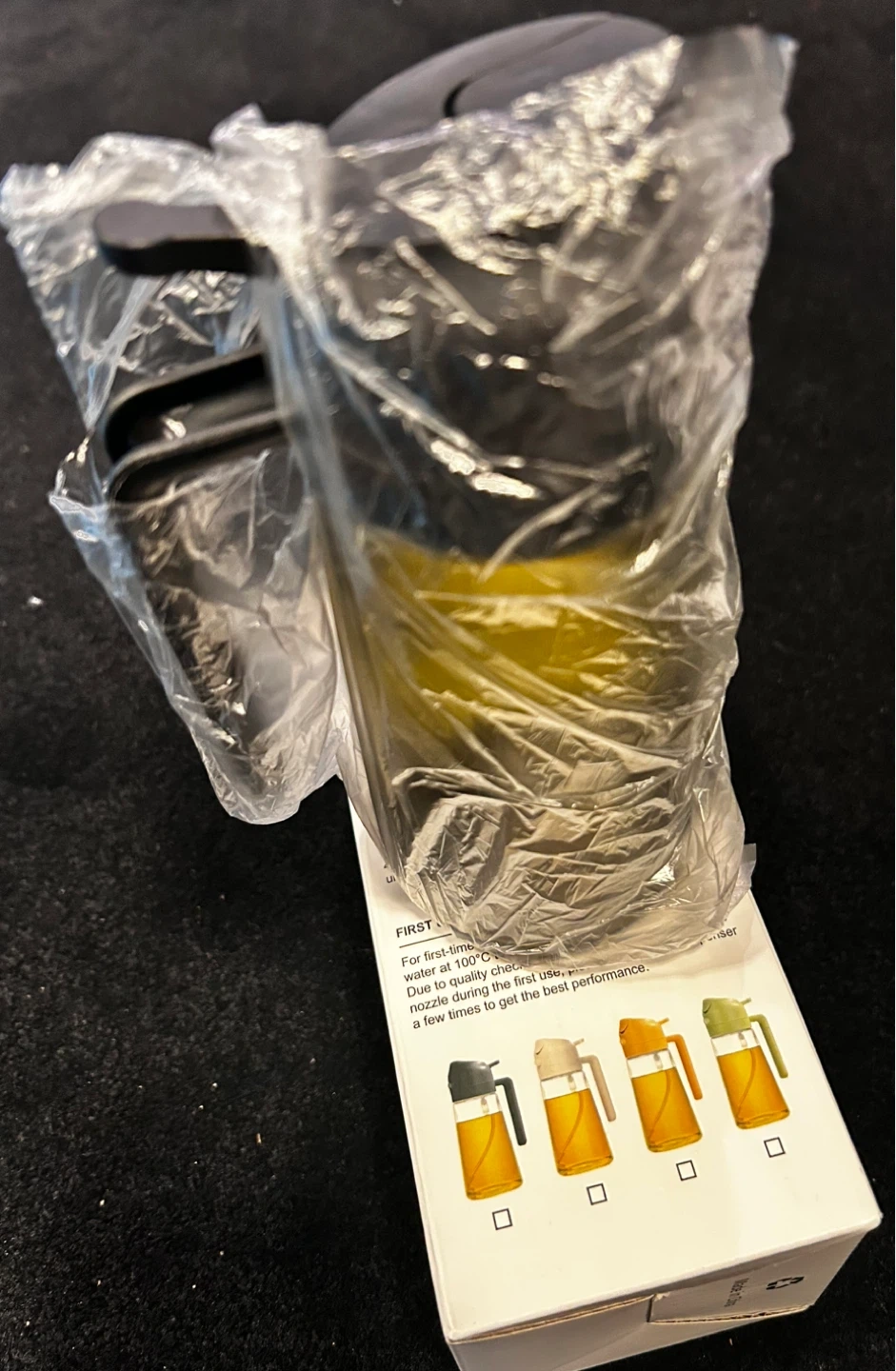 This YARRAMATE 2 in 1 oil sprayer and dispenser has a 470ml capacity. It's made with dark green, lead-free glass and features a comfortable grip and anti-clogging filter port. It also has a gravity sensor for opening and closing.