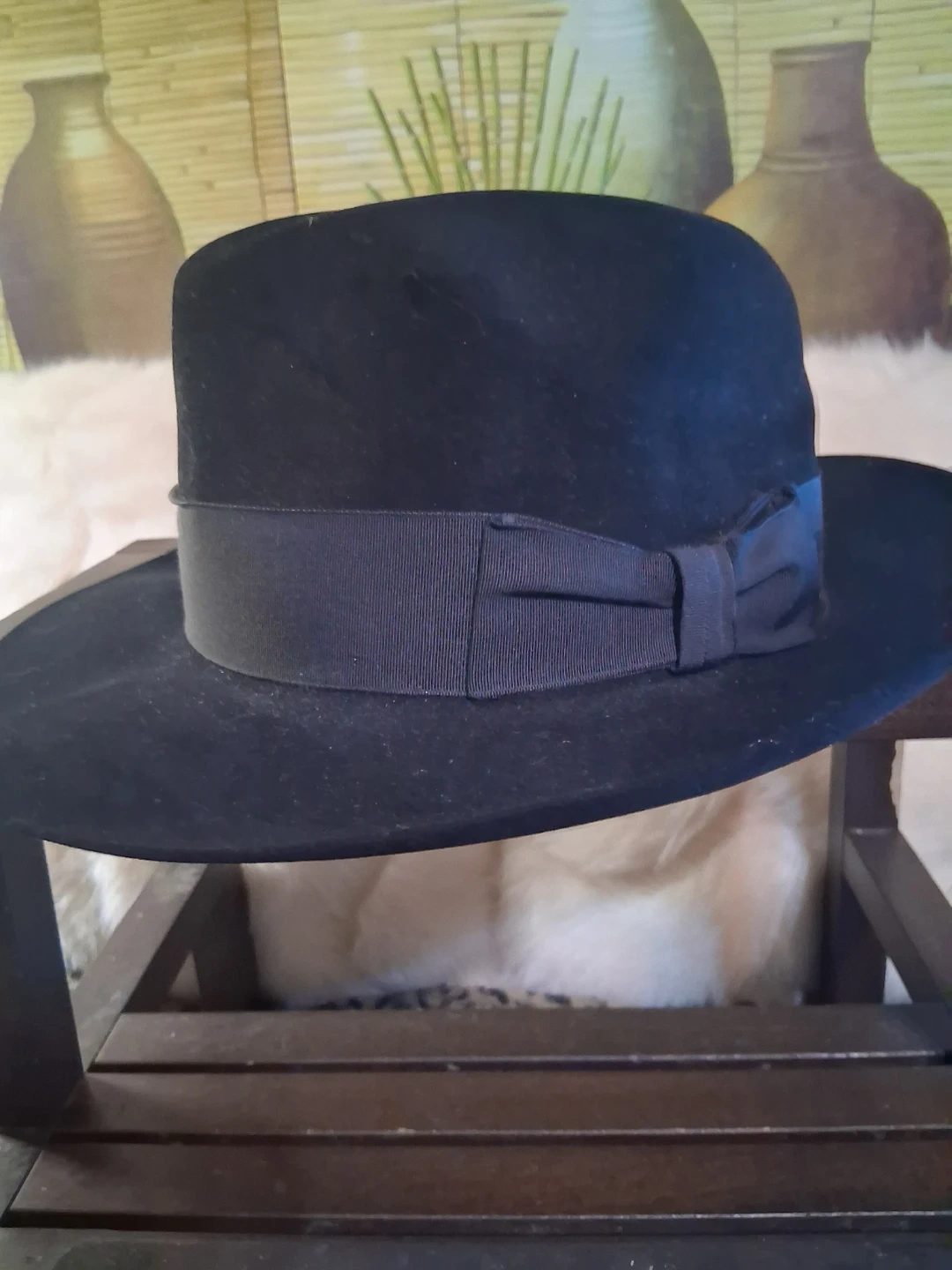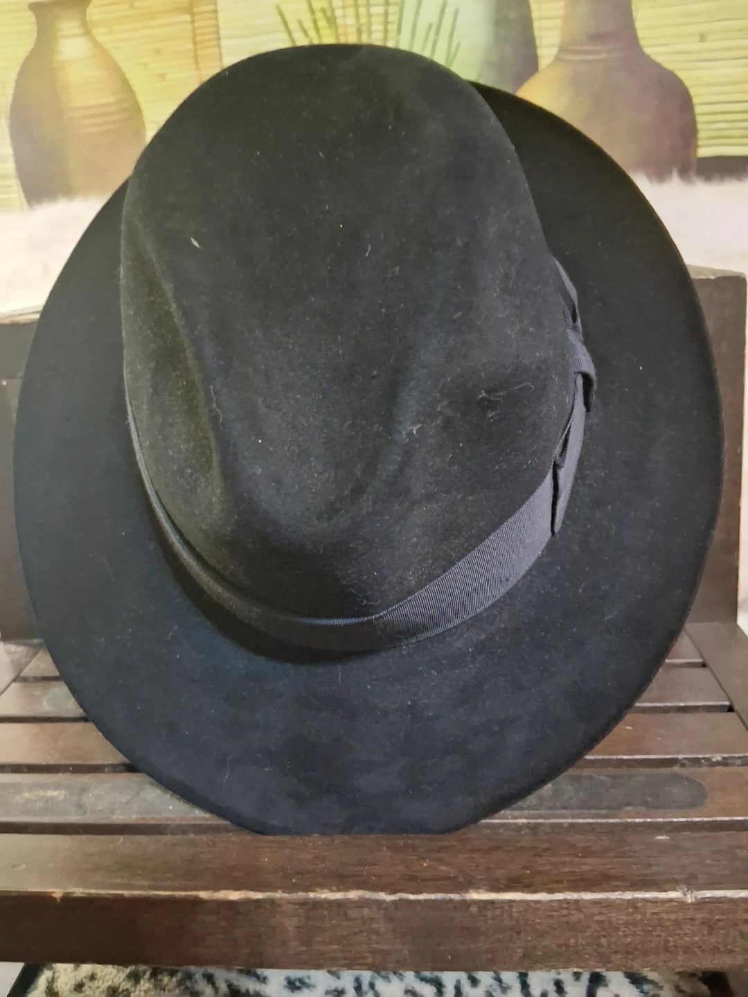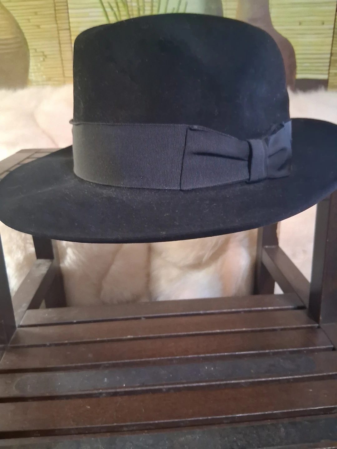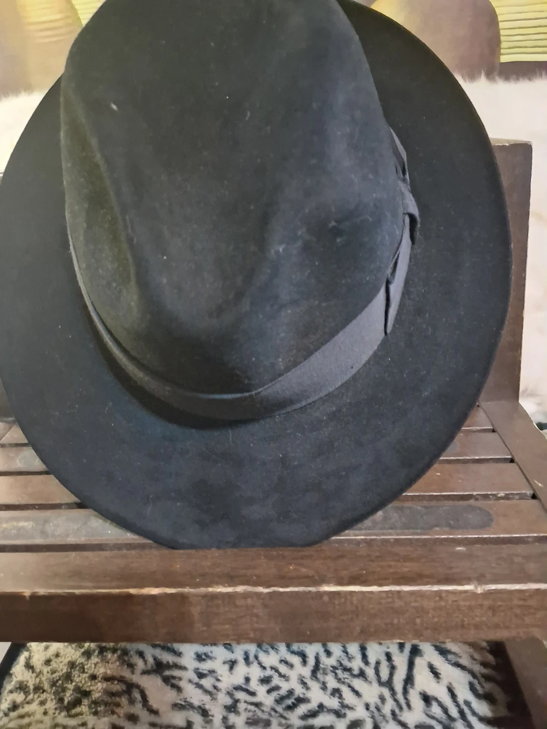Selling a classic black fedora hat! It's in great condition and ready for a new owner. Perfect for adding a touch of style to any outfit
