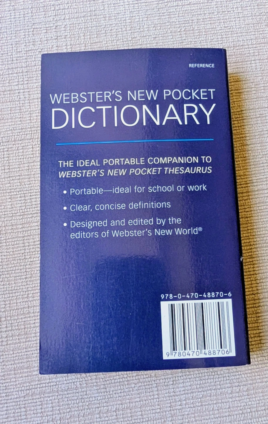 This is Webster's New Pocket Dictionary, expanded and updated. It contains more than 35,000 entries with ready-reference tables. It's the ideal portable companion for school or work!