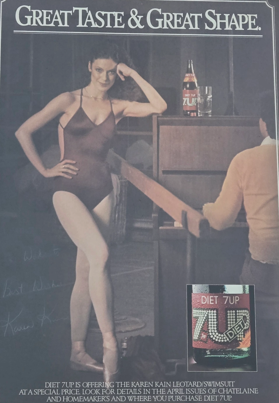 Rare 1970's Diet 7up poster, signed by the beautiful and successful Canadian ballet legend, Karen Kain (B.1951).