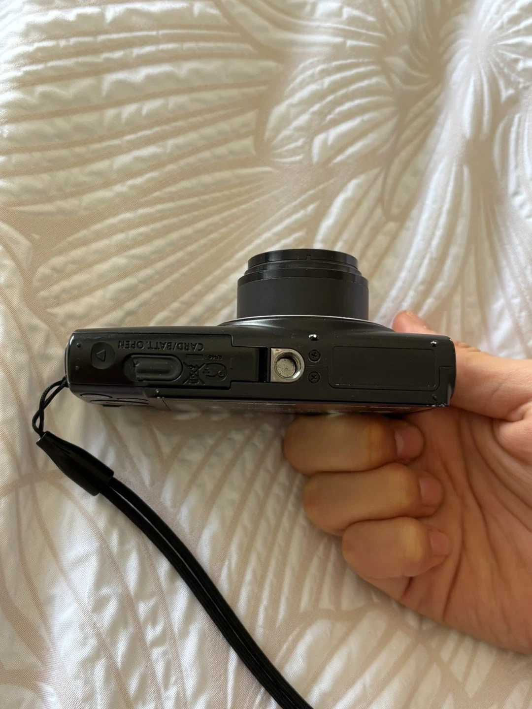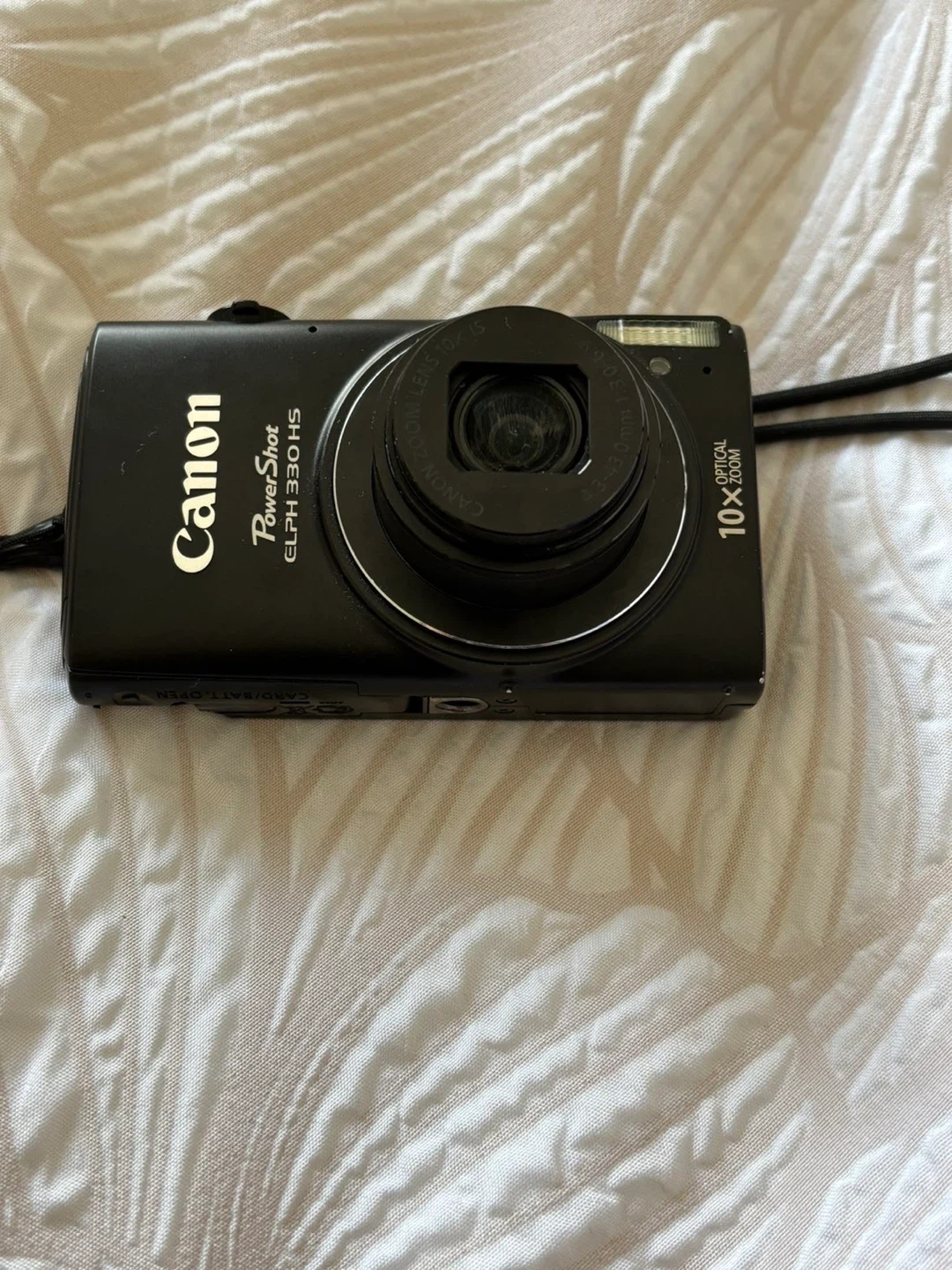 This is a black Canon PowerShot ELPH 330 HS digital camera.