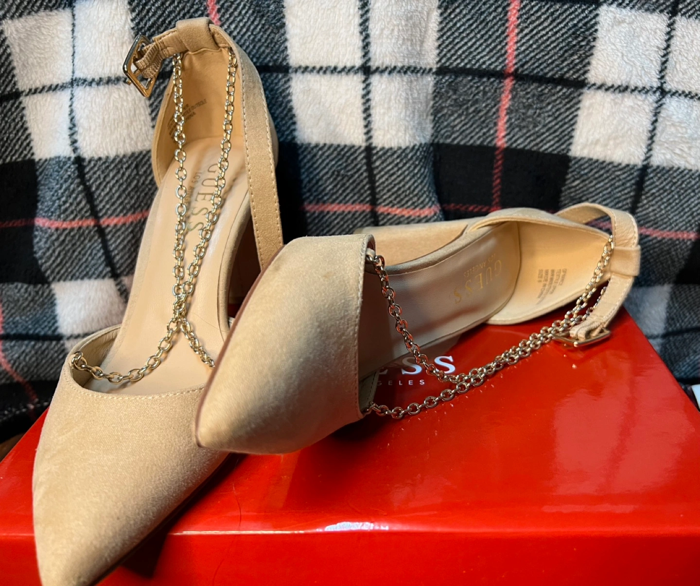 Buy & SellGuess HeelsGuess Heels$40Tan suede heels with gold chain detail. Ankle strap closure. Slightly used Guess brand Size 6ConditionLike newSize6BrandGuessWHERE TO MEETJane-Teston IntersectionView MapSELLEREeshaMaple201 review0 chats·1 favorites·38 viewsSEND CHAT TO SELLERHi Eesha! I’m interested in your listing.Hi Eesha! I’m interested in your listing.Get the Karrot app to chatSign In to chat