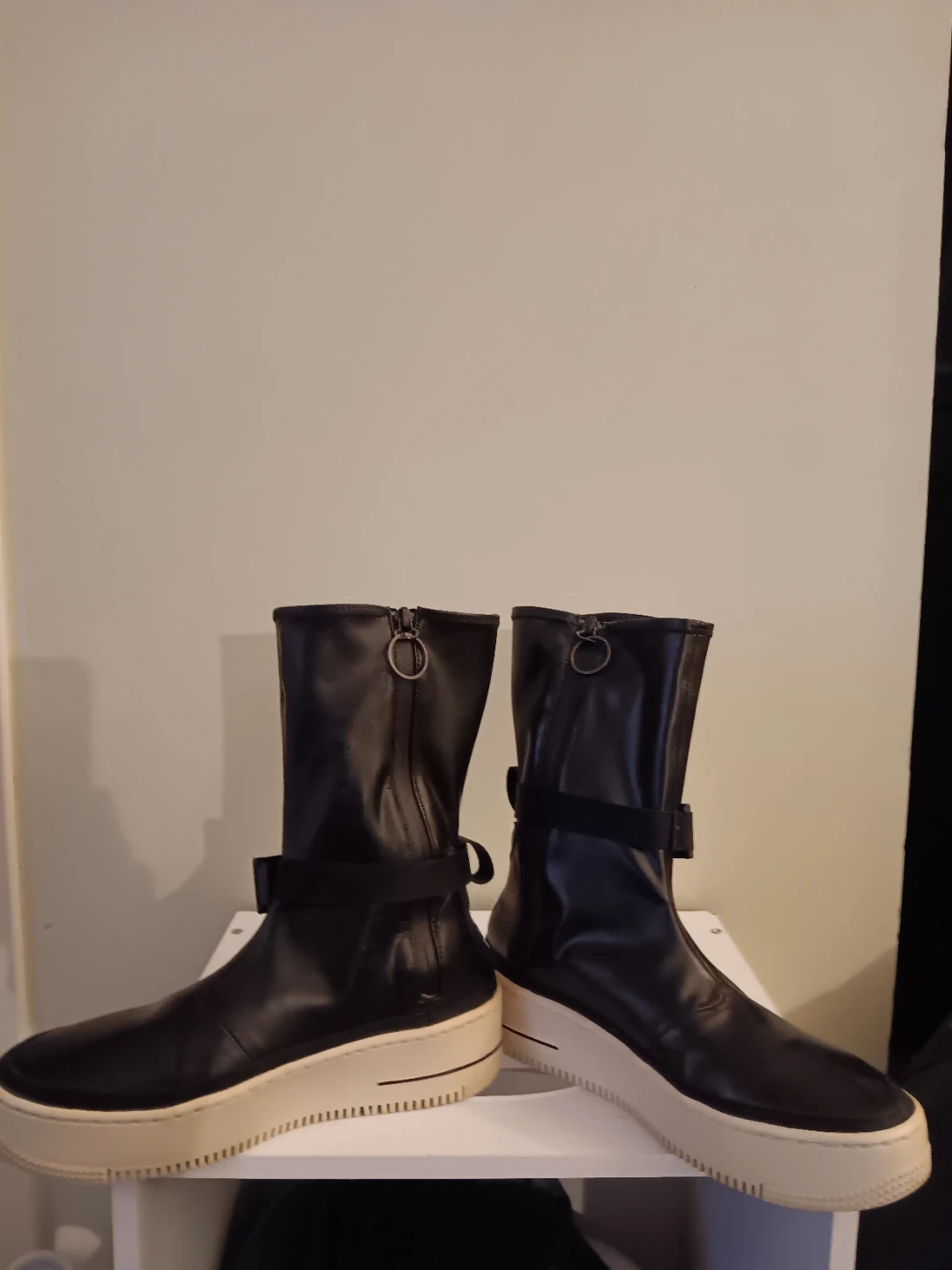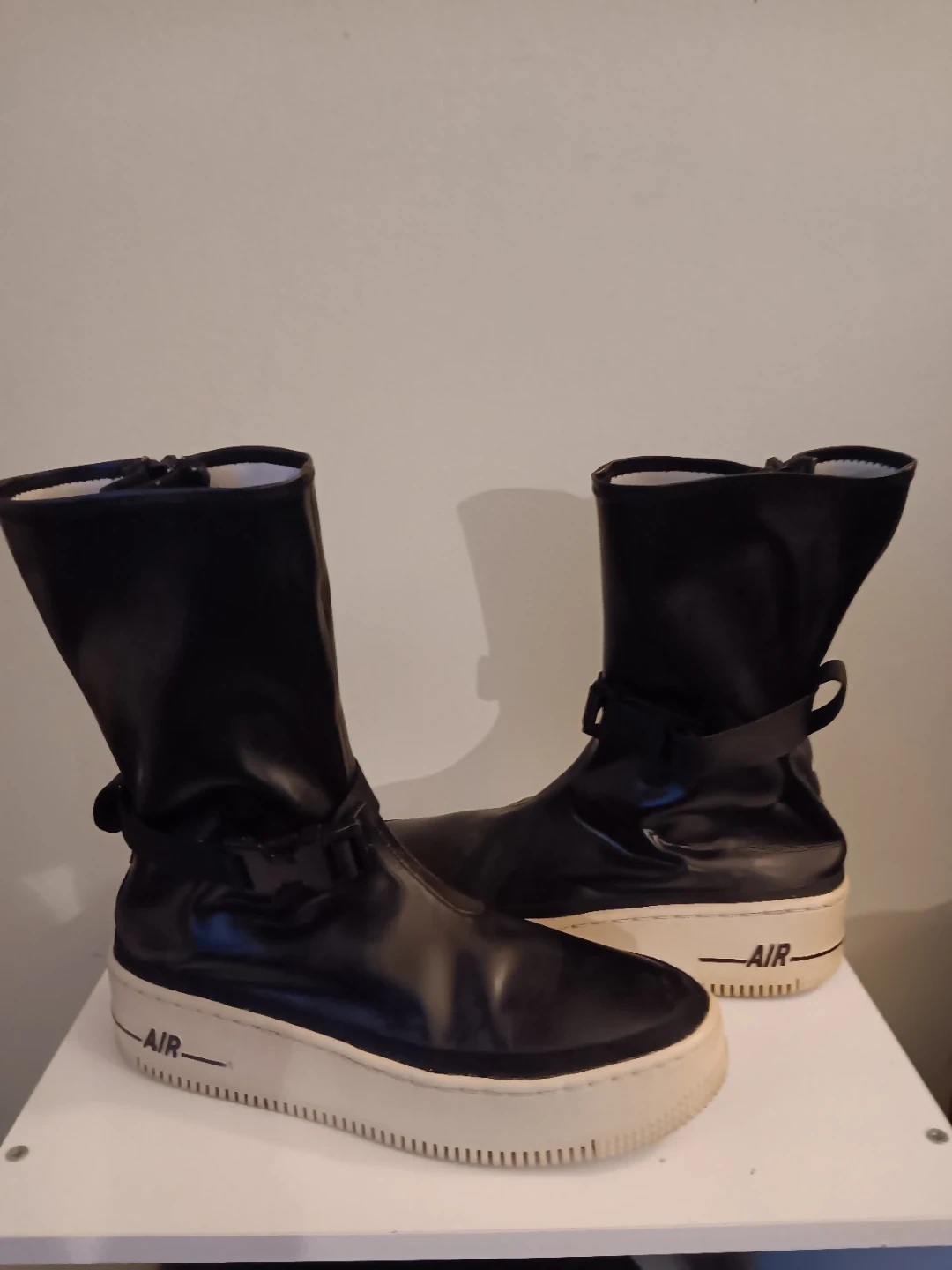 Black leather Nike Air Force 1 platform boots with zippers. Preowned, made 2018 some light discolouration on soles.